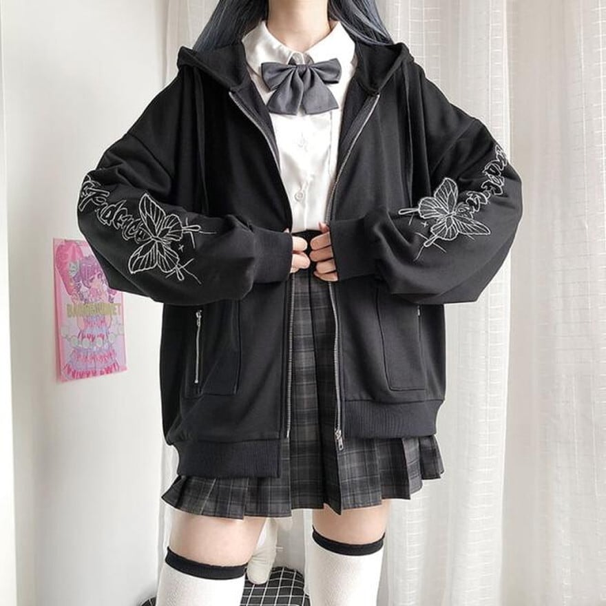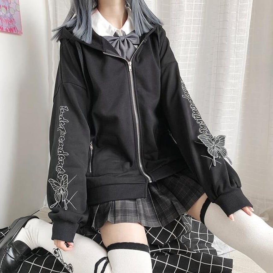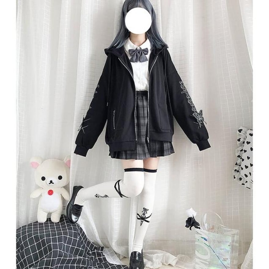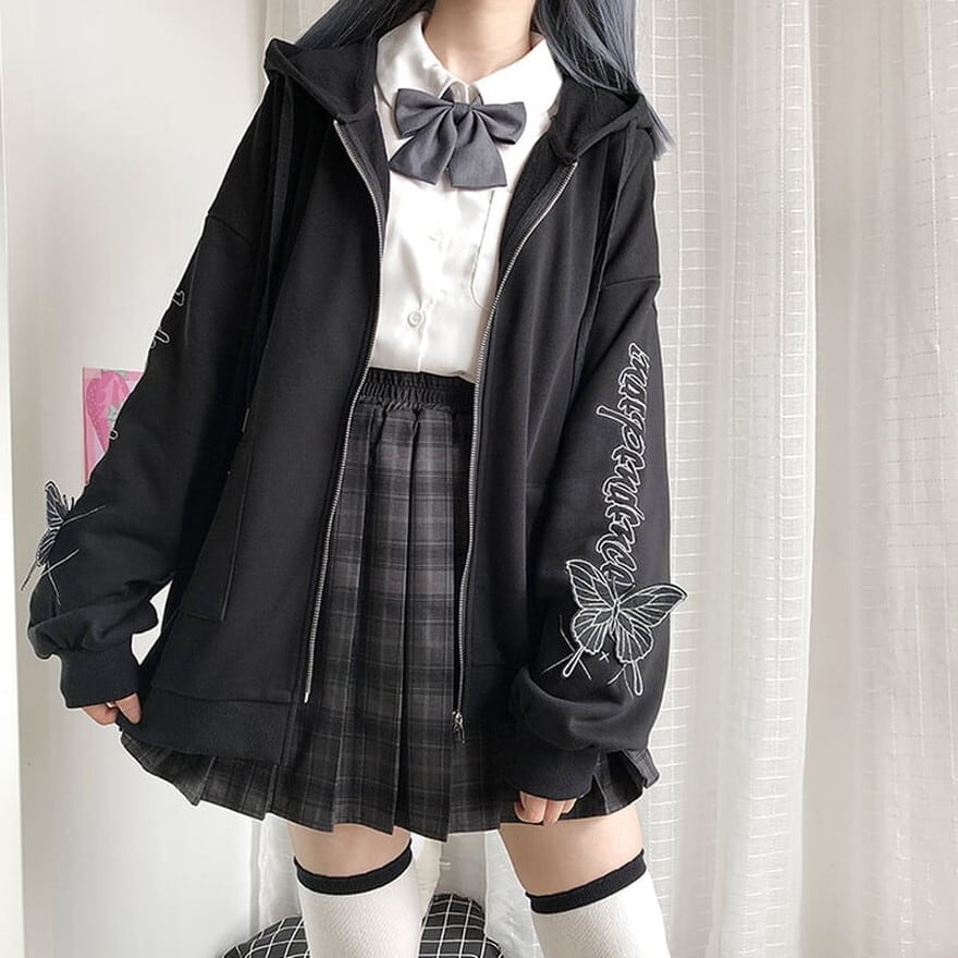 白い蝶が袖で舞う瞬間、あなたは闇系ストリートの主役に。英字刺繍が語る"ダークな現実"がコーデに深みを与える。オーバーサイズシルエットで着痩せ効果抜群、SNS映え確実。制服×本パーカーで最強スクールコーデ完成。ライブでもカフェでも、視線を集める存在感。毎日着たくなる運命の一着