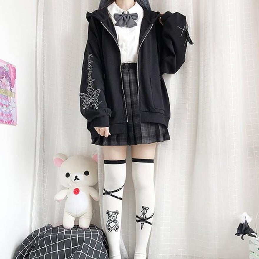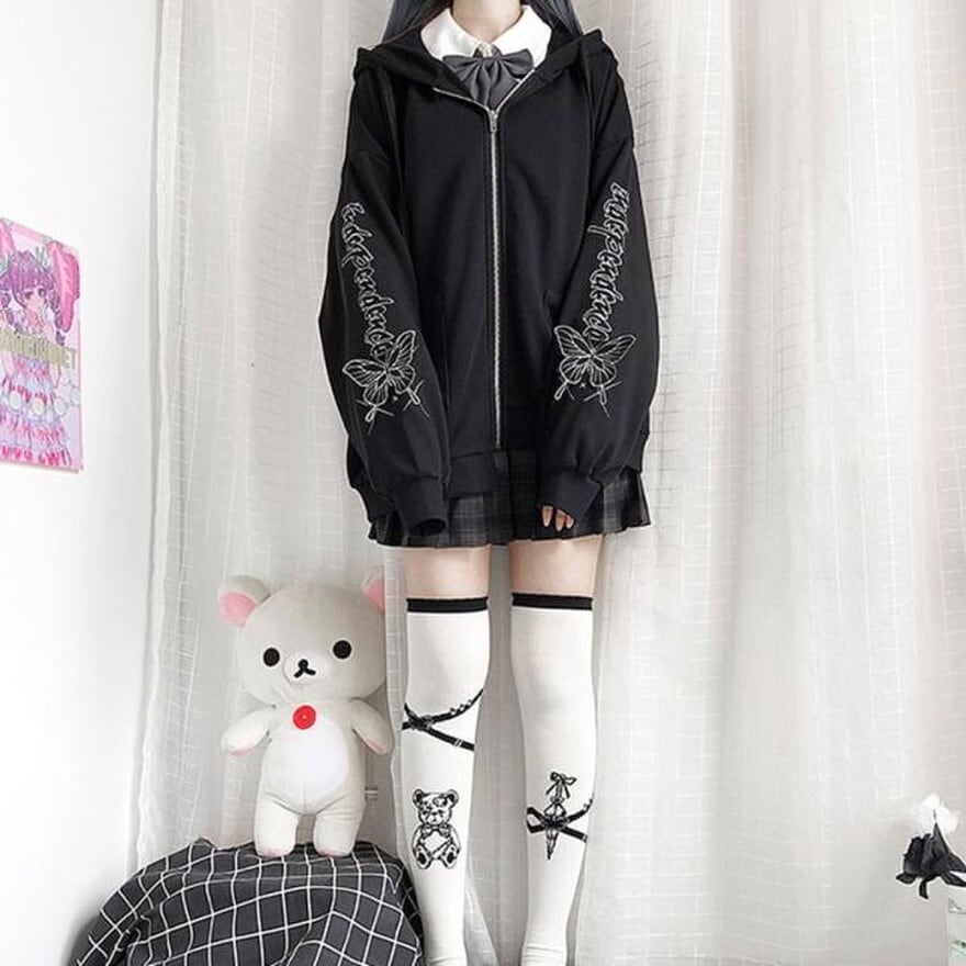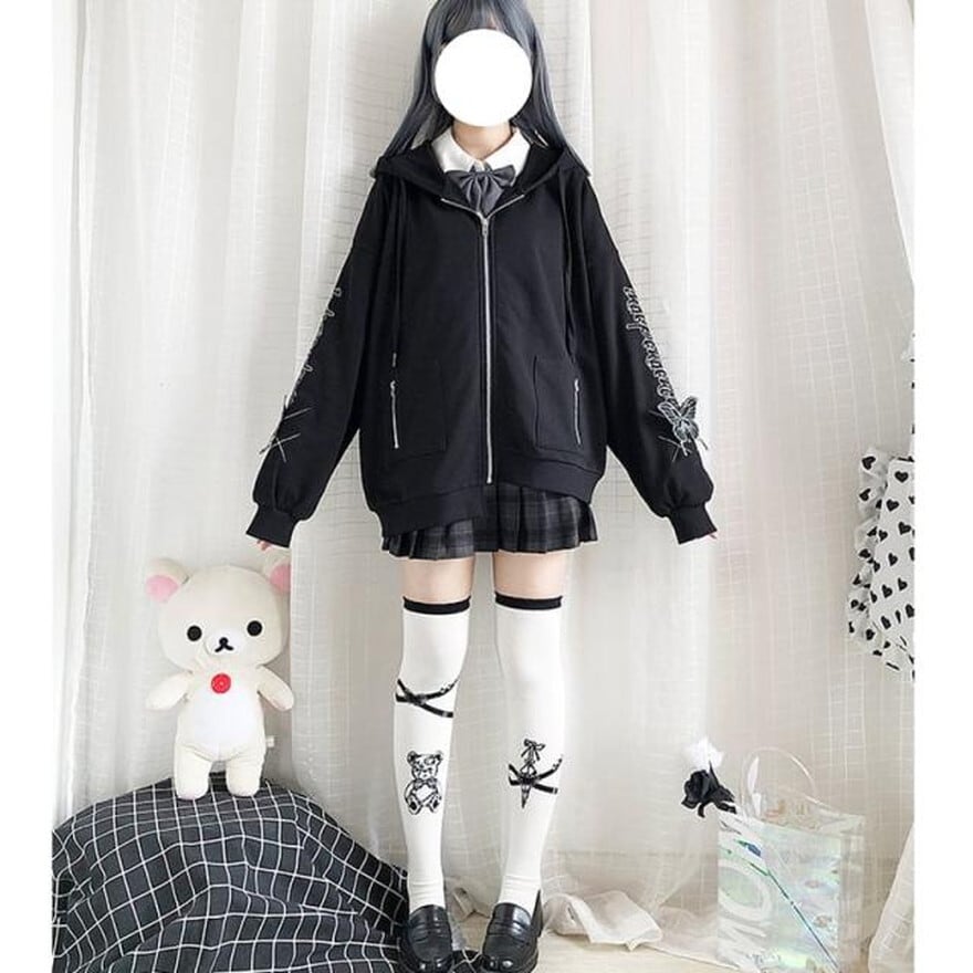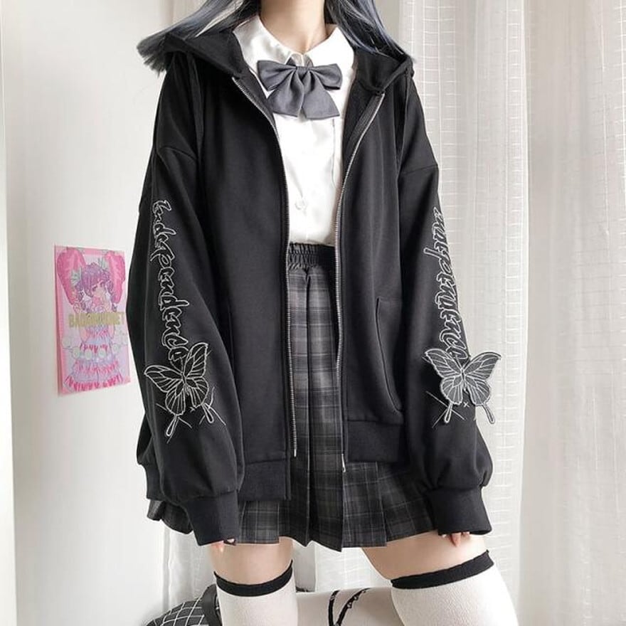 白い蝶が袖で舞う瞬間、あなたは闇系ストリートの主役に。英字刺繍が語る"ダークな現実"がコーデに深みを与える。オーバーサイズシルエットで着痩せ効果抜群、SNS映え確実。制服×本パーカーで最強スクールコーデ完成。ライブでもカフェでも、視線を集める存在感。毎日着たくなる運命の一着