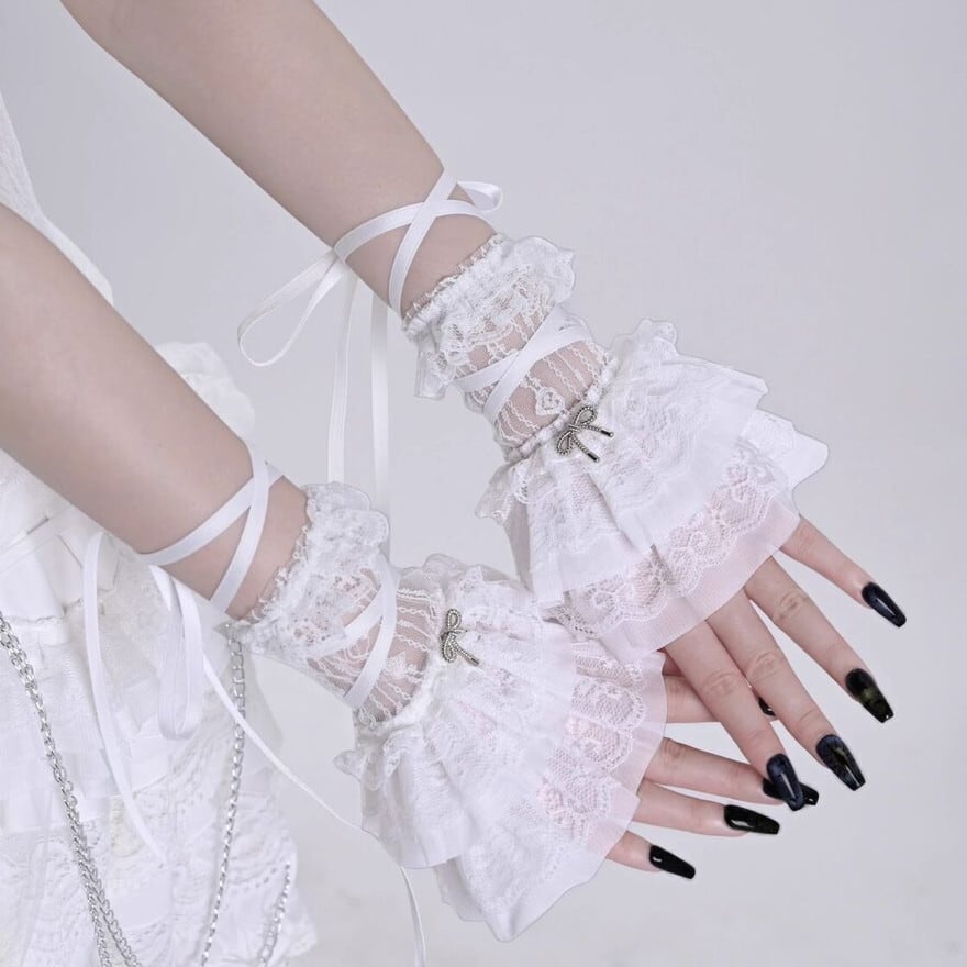 クロスした編み上げリボンが腕を細く見せ、手元の地雷系・量産型スタイルを格上げします。