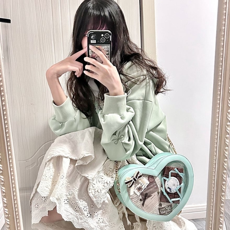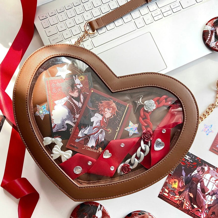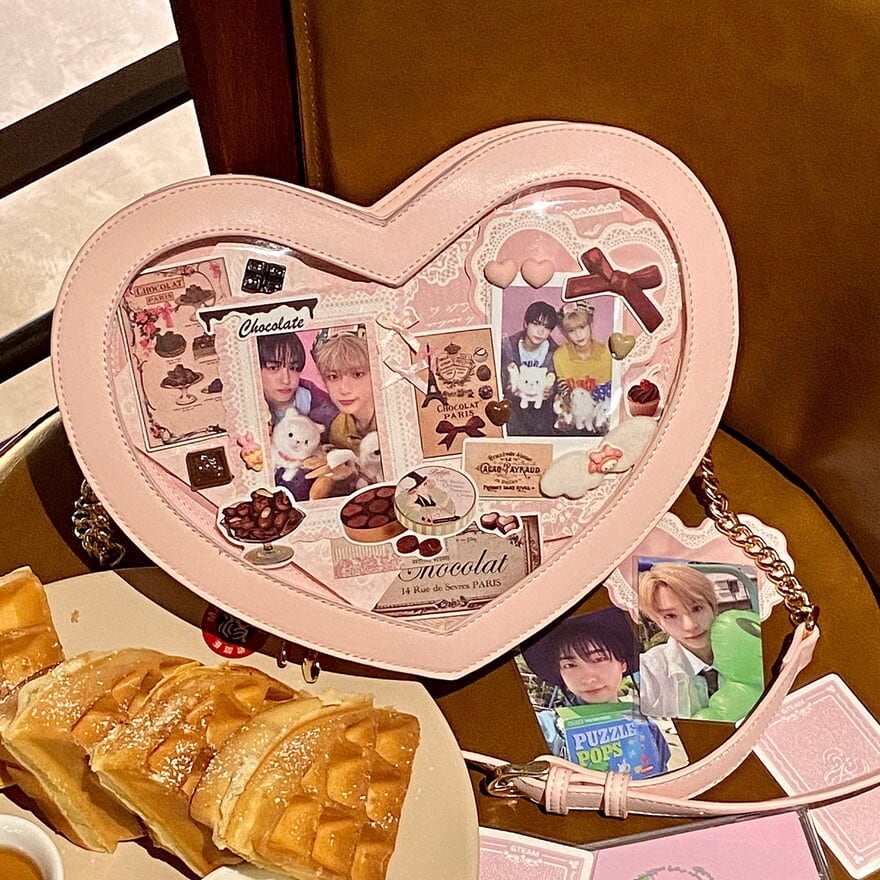 ・ハート×チョコの2wayデザイン:表面は透明窓の痛バッグ、裏面はとろけるチョコの大人可愛いデザインになっており、シーンに合わせて使い分けが可能です。