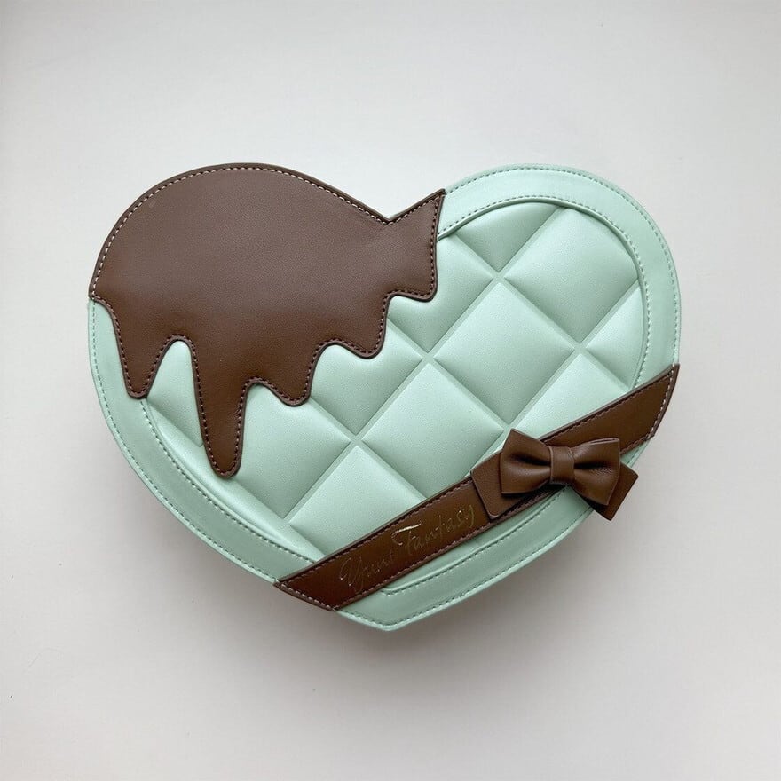 甘く溶けるチョコミントの幻想 ハート型ゴスロリショルダーバッグ|クラシカルロリータのための夢かわアクセ