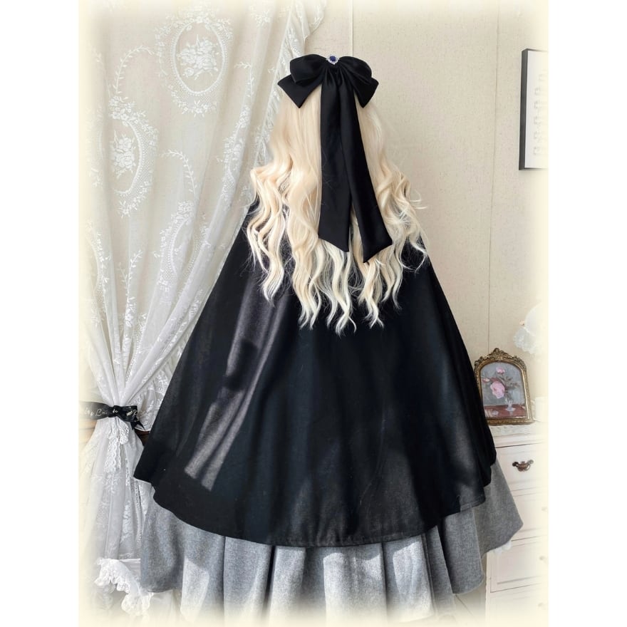 立体感のあるフレアシルエットと、物語性を感じさせるケープが全体を引き締め、甘さを抑えた大人ロリィタスタイルに。