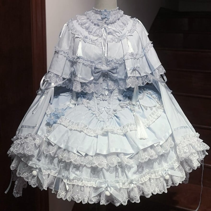 紫陽花の精霊 クラシカルロリィタドレス)|重ねレースが揺れる幻想ワンピース|姫袖ケープ付き上品コーデ