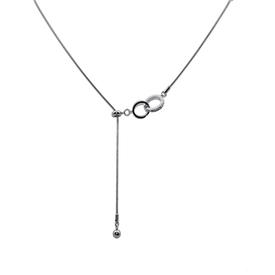 二連リングモチーフとロングチェーンが印象的なY字タイプのゴシックネックレス。ミニマルなシルバートーンがゴスロリや地雷系、クラシカルロリータの首元に静かな存在感を演出します。レイヤードやチョーカーとの重ね付けにも映え、日常から撮影まで幅広く活躍する洗練アクセです。