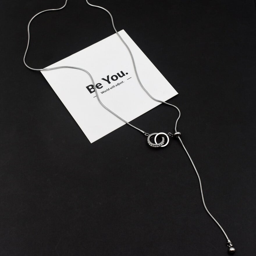 静寂に溶ける二連リング Y字ゴシックネックレス|ダークロリータの首元を彩るミニマル象徴アクセ