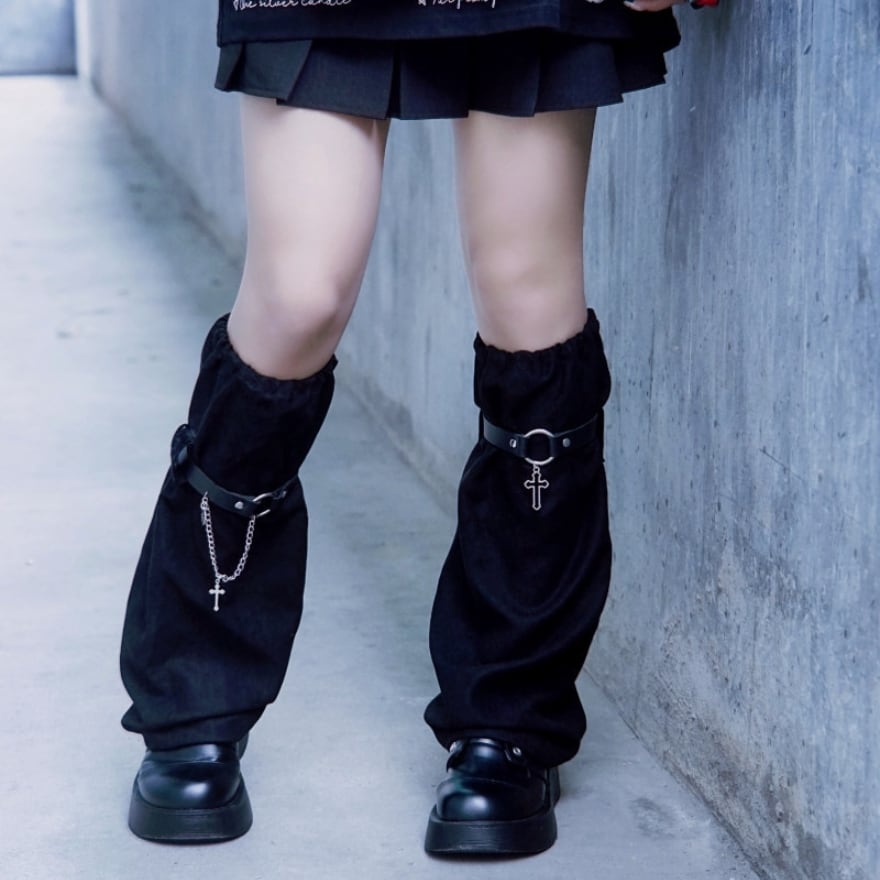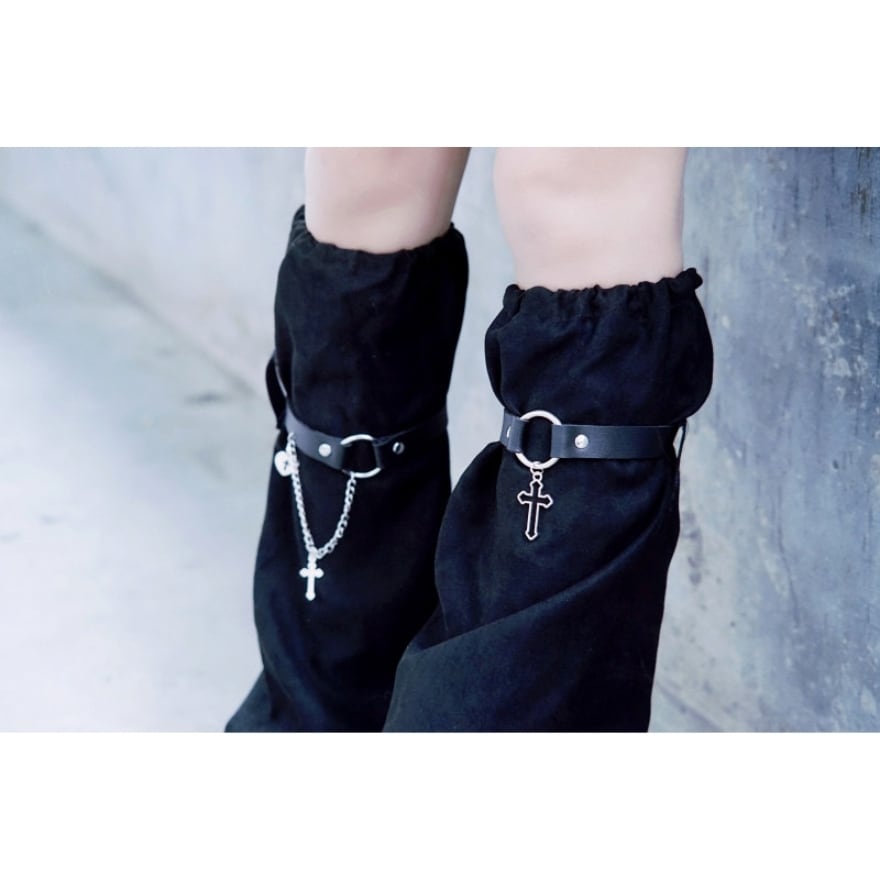 地雷系・ゴシックファッションの完成度を劇的に高める、クロスチャーム付きレッグカバー。