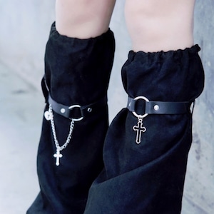 ゴシック・地雷系女子のためのクロスチャーム付ブラックレッグカバー | ライブ参戦やストリートコーデ