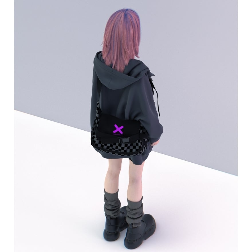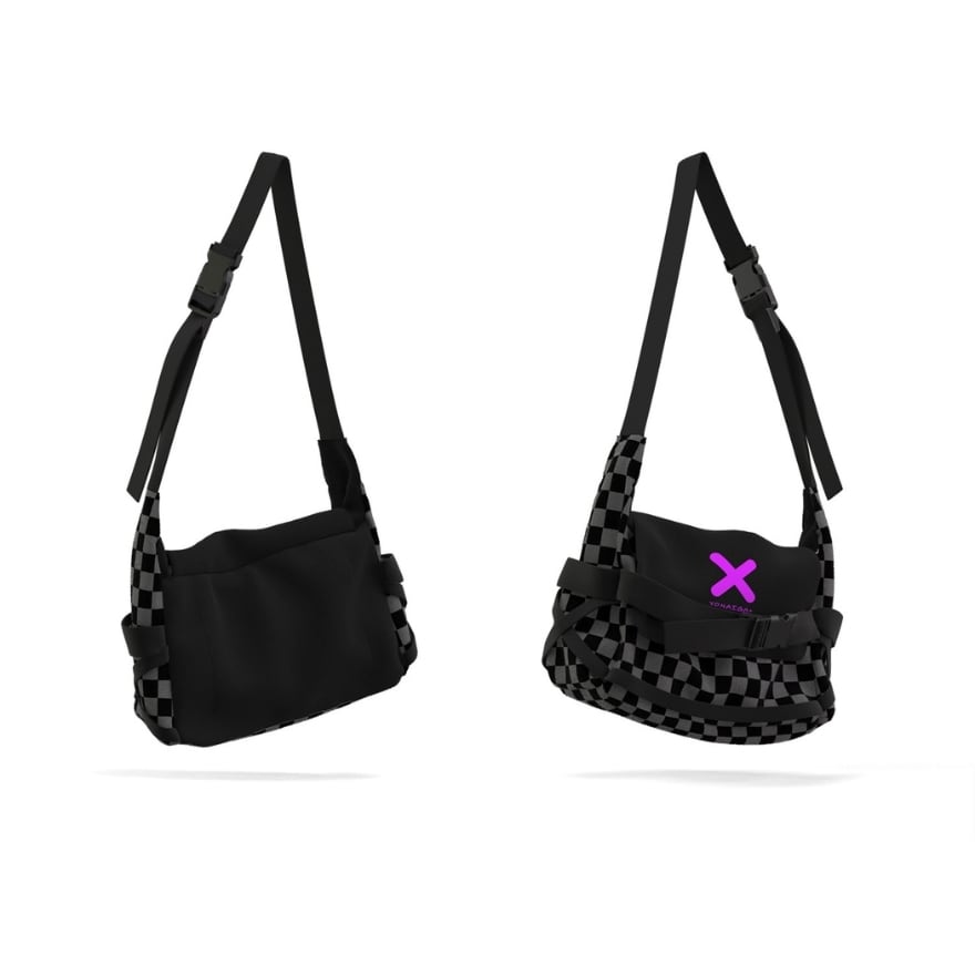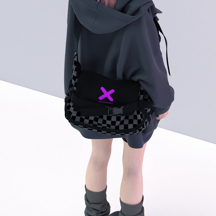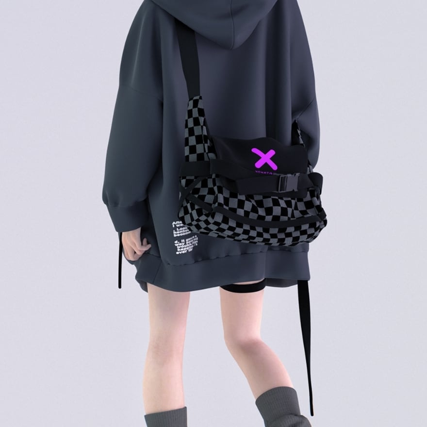 ストリートスタイルに映えるチェッカー柄と立体フォルムが特徴の、軽量&実用性を兼ね備えたショルダーバッグ。