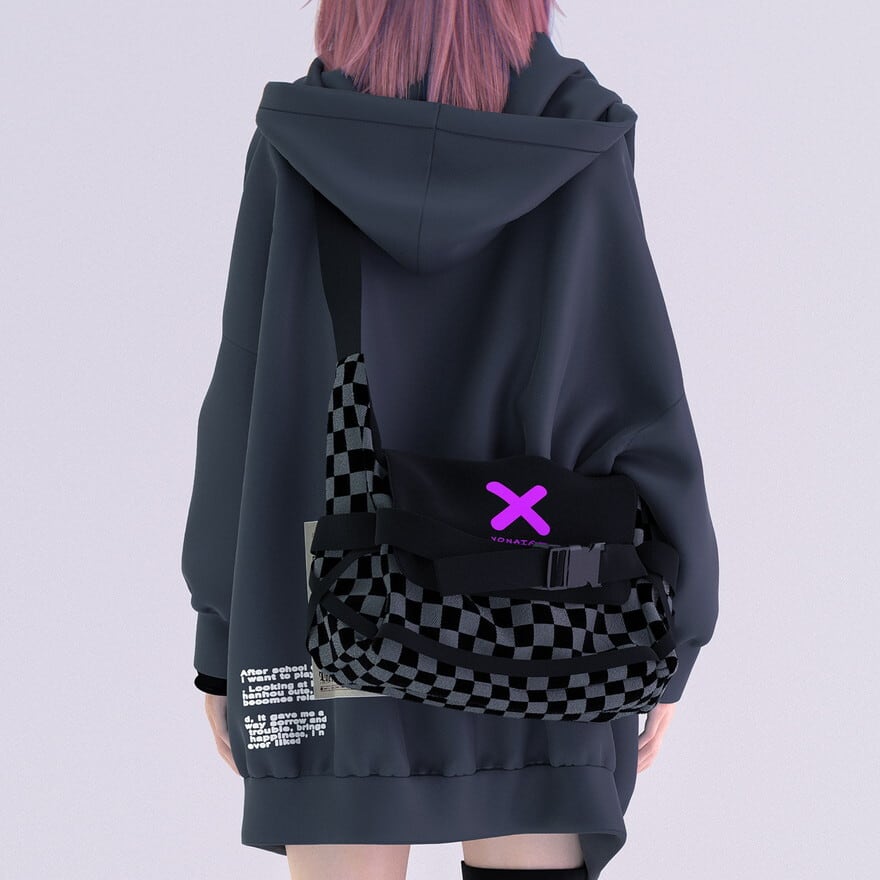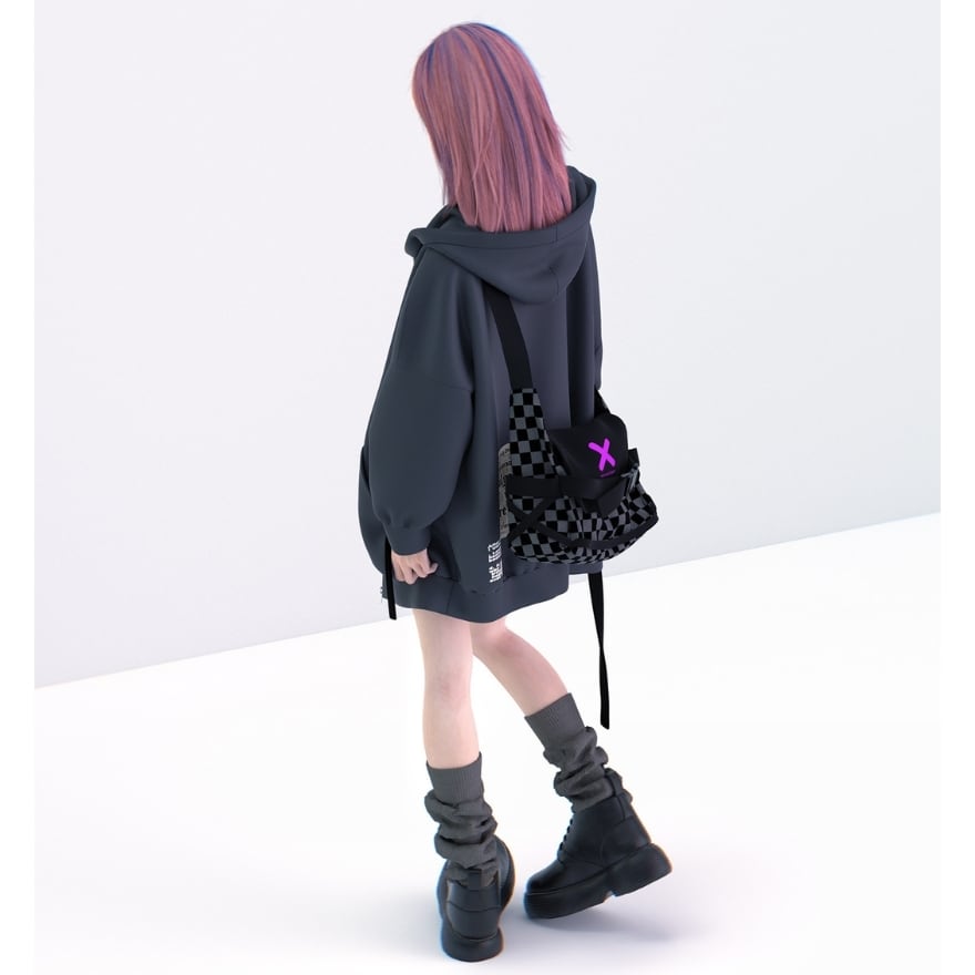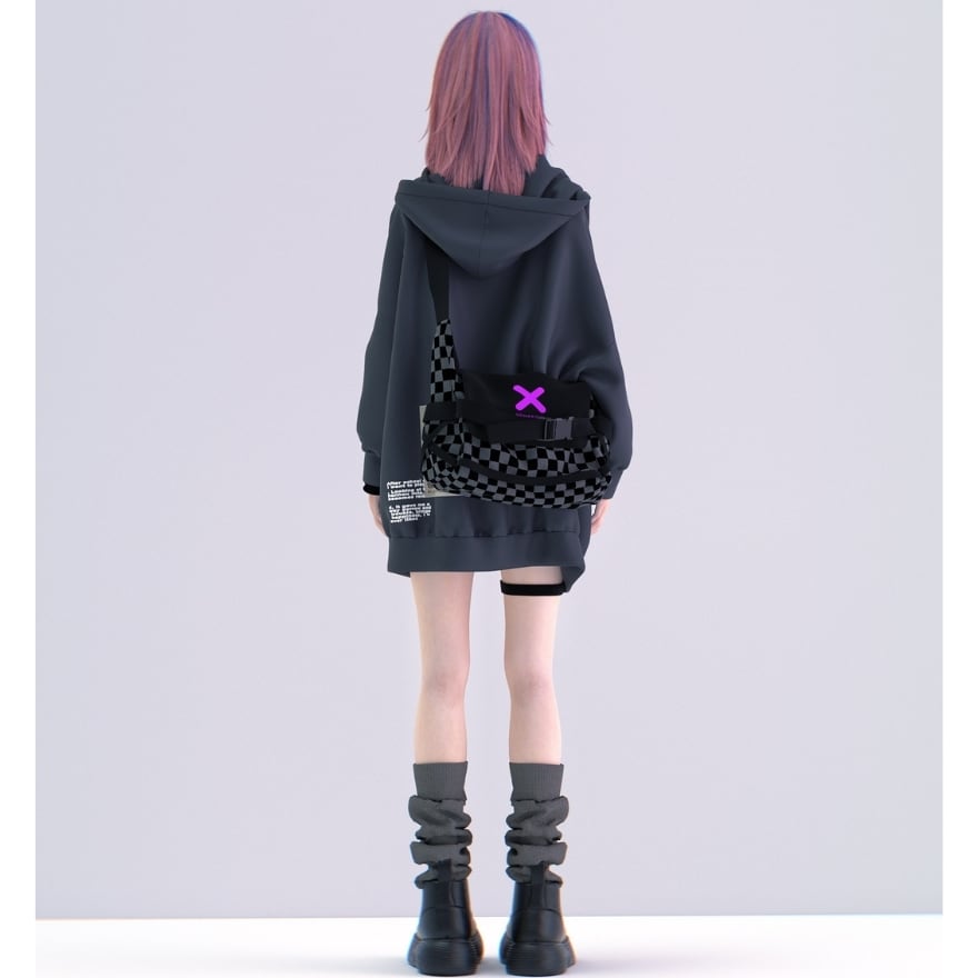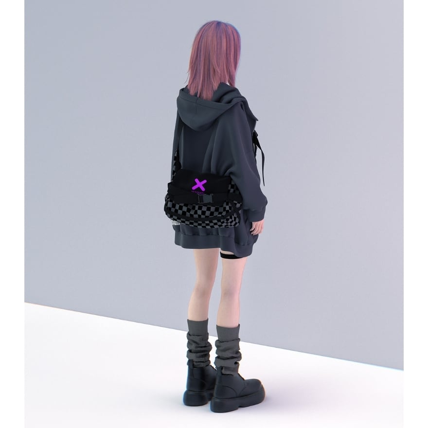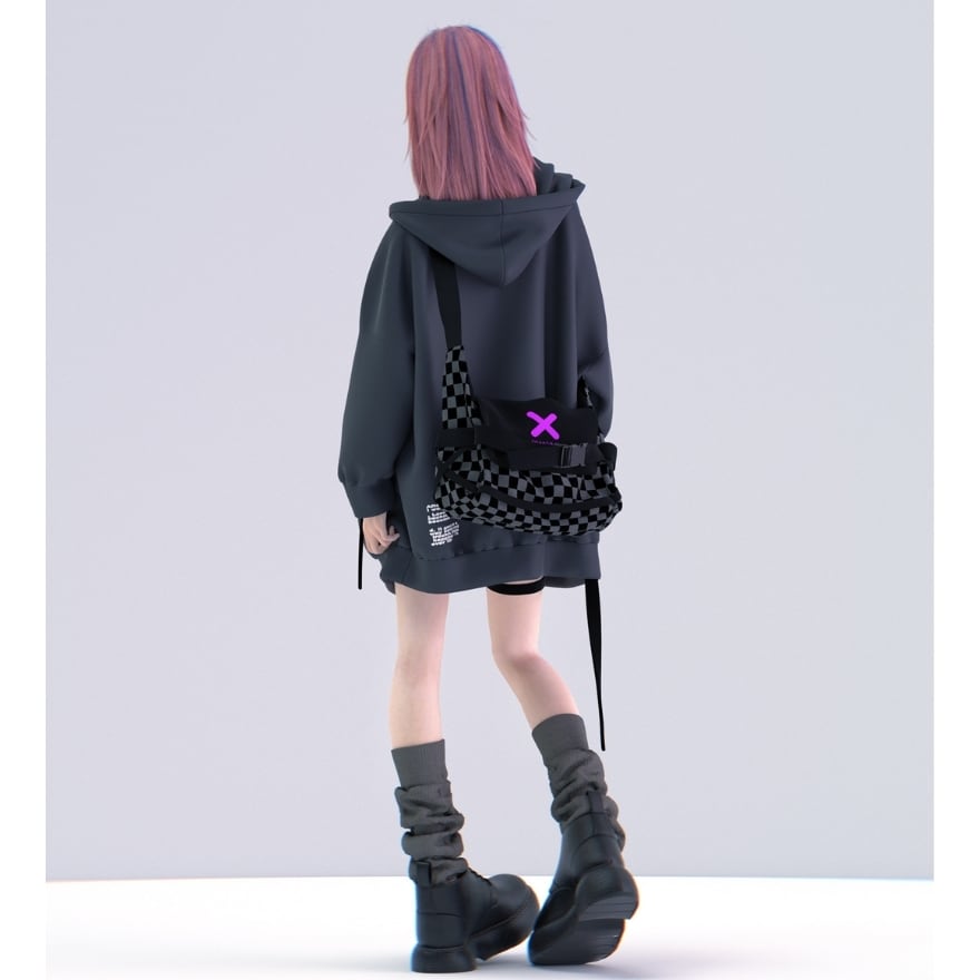 ストリートスタイルに映えるチェッカー柄と立体フォルムが特徴の、軽量&実用性を兼ね備えたショルダーバッグ。