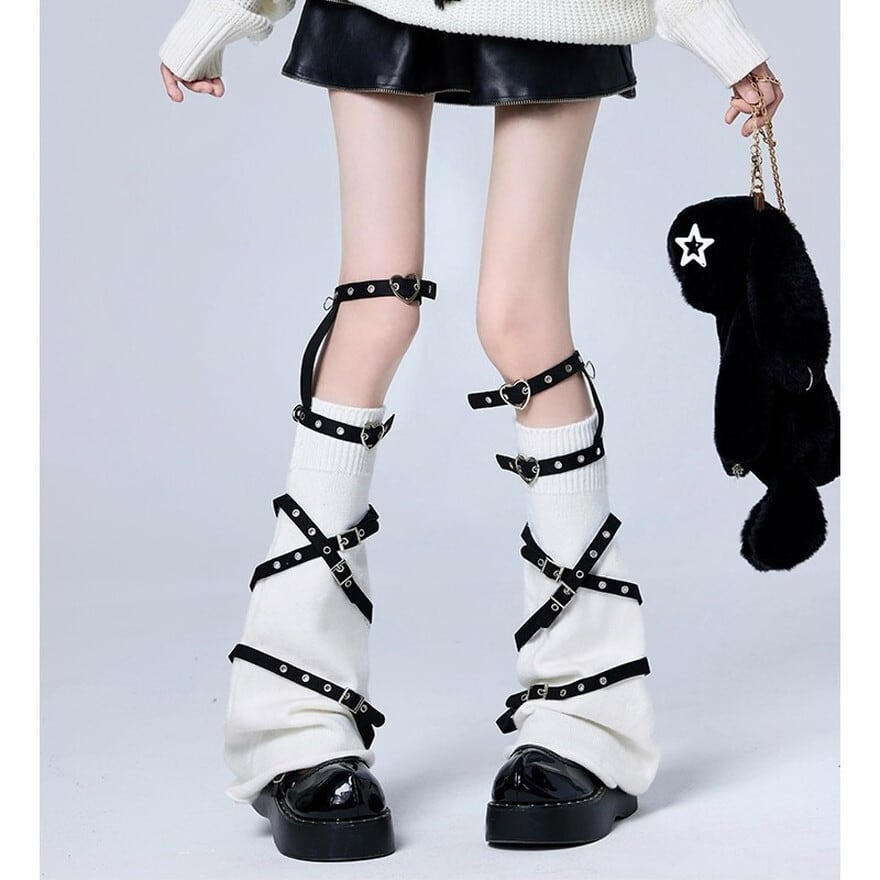 → 単色ベースのレッグウォーマーにブラックベルトを組み合わせた構成のため、コーデ全体を引き締めるアクセントとして使いやすいデザインです。