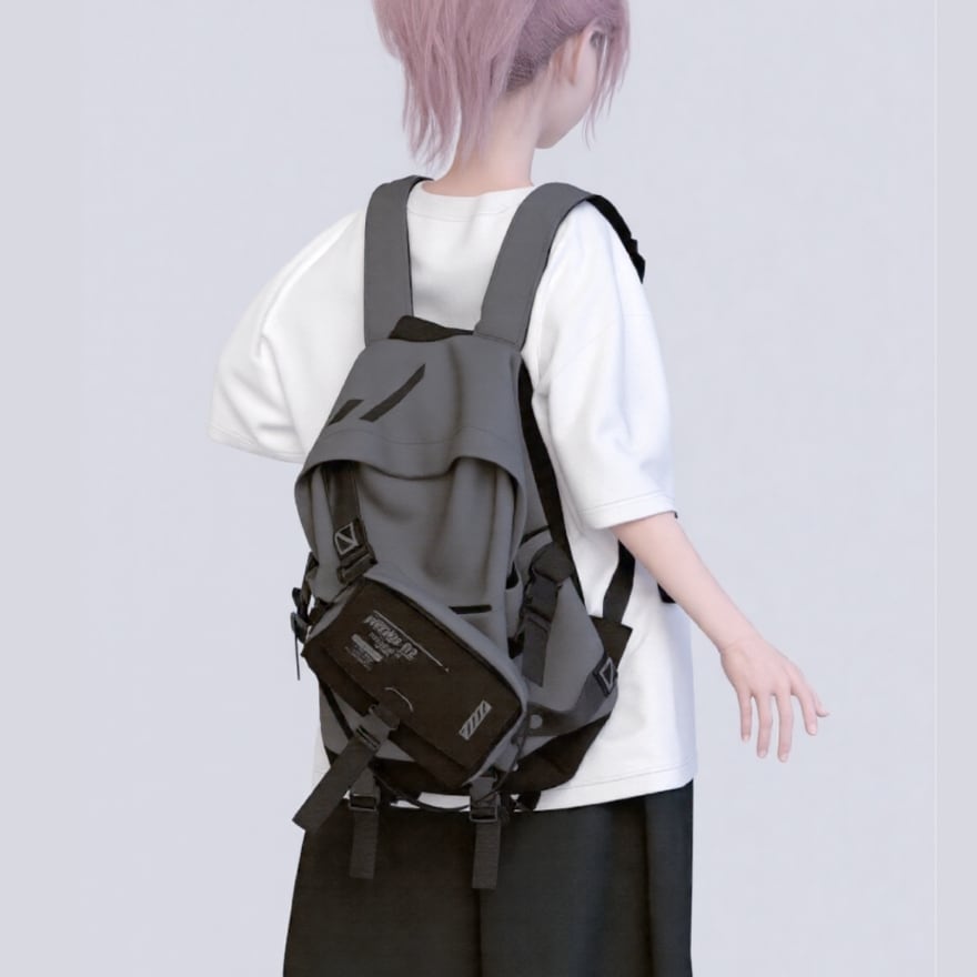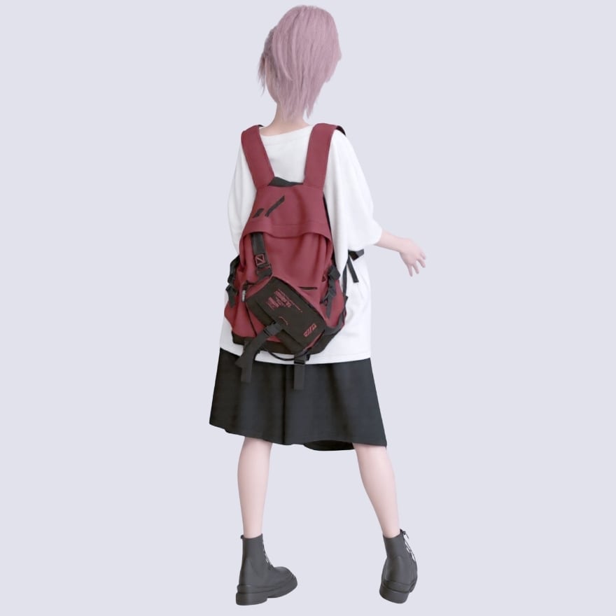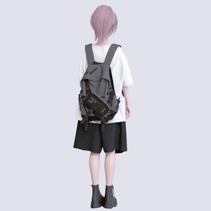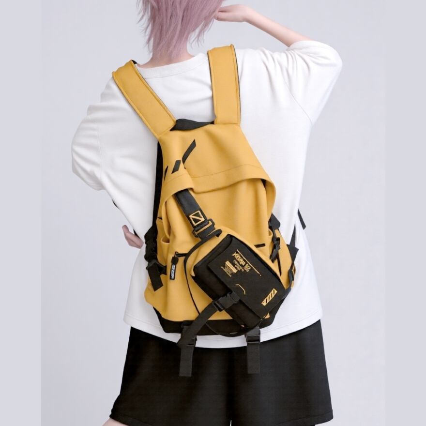 存在感のある配色とギミック感あふれるデザインが魅力の、ミニバッグ付きストリートバックパック。