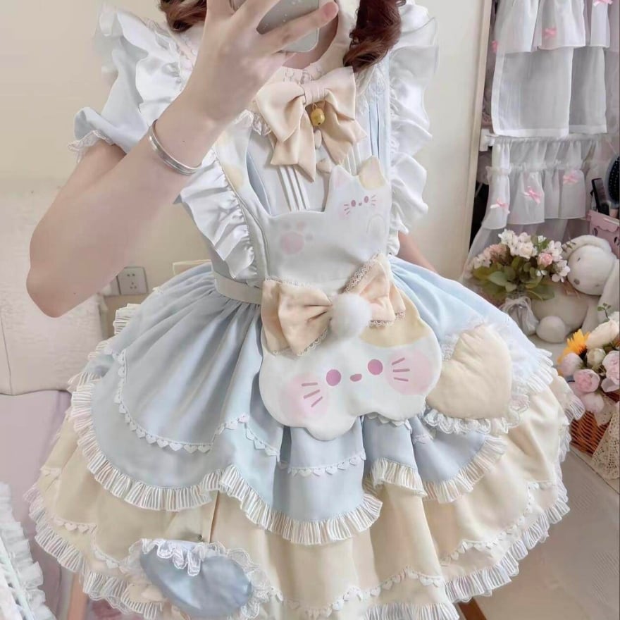 夢見るパステルカラーの猫耳エプロンドレス:お茶会やコンカフェで輝くフリルたっぷり甘ロリスタイル