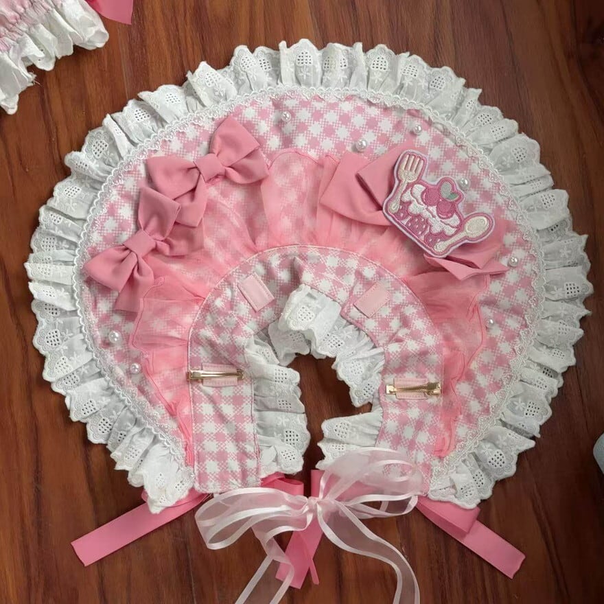 A. ボンネットは顔まわりを包み込むようなデザインで、より甘ロリらしい印象になります。