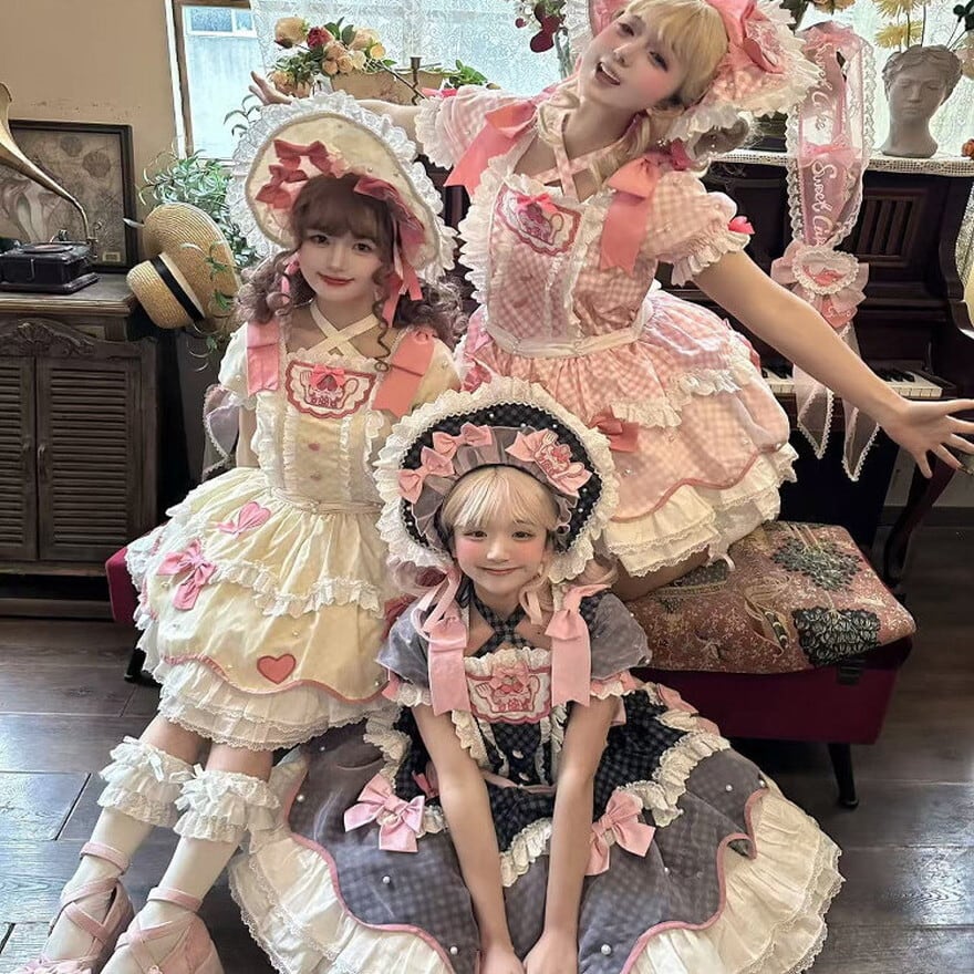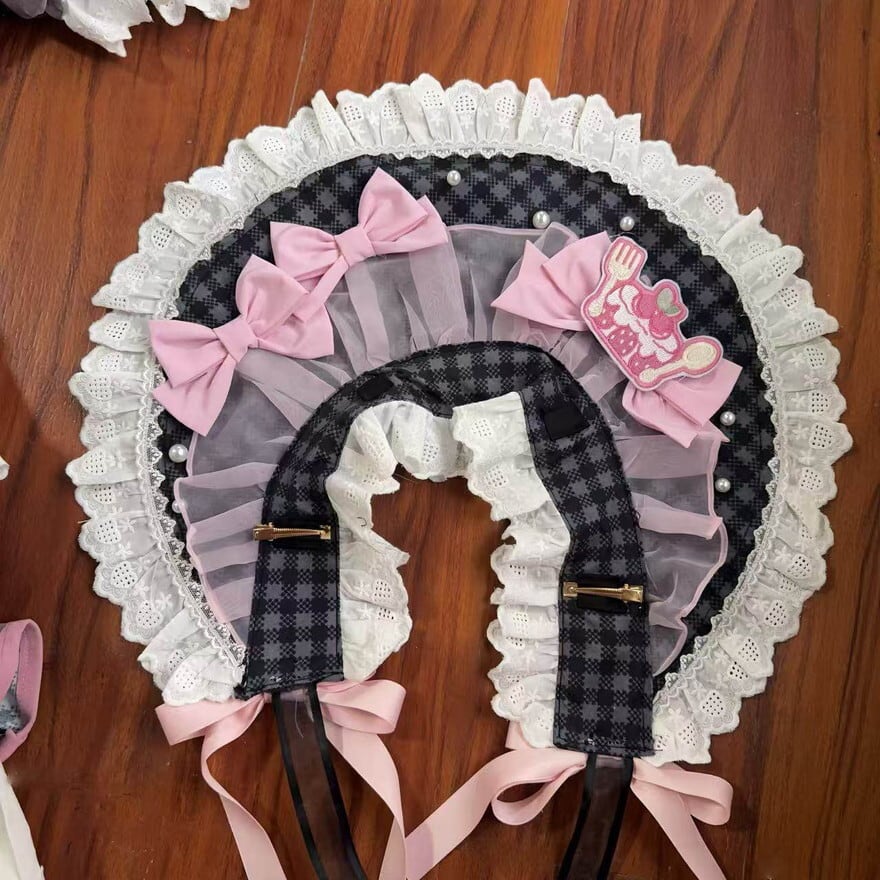 お茶会の主役を飾る魔法のヘッドドレス。豪華フリルとリボンが彩るギンガムチェックの甘ロリボンネット