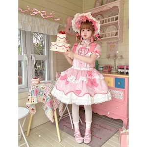 圧倒的なボリューム感でドールのような愛らしさを引き立てる、ギンガムチェック柄の豪華な甘ロリボンネットです。