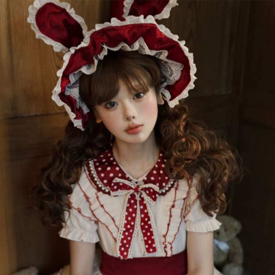 憧れの「うさぎさん」になれる魔法のボンネット。ベルベットの光沢と繊細なレースが、あなたをドールの世界へと誘います。