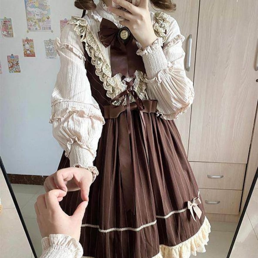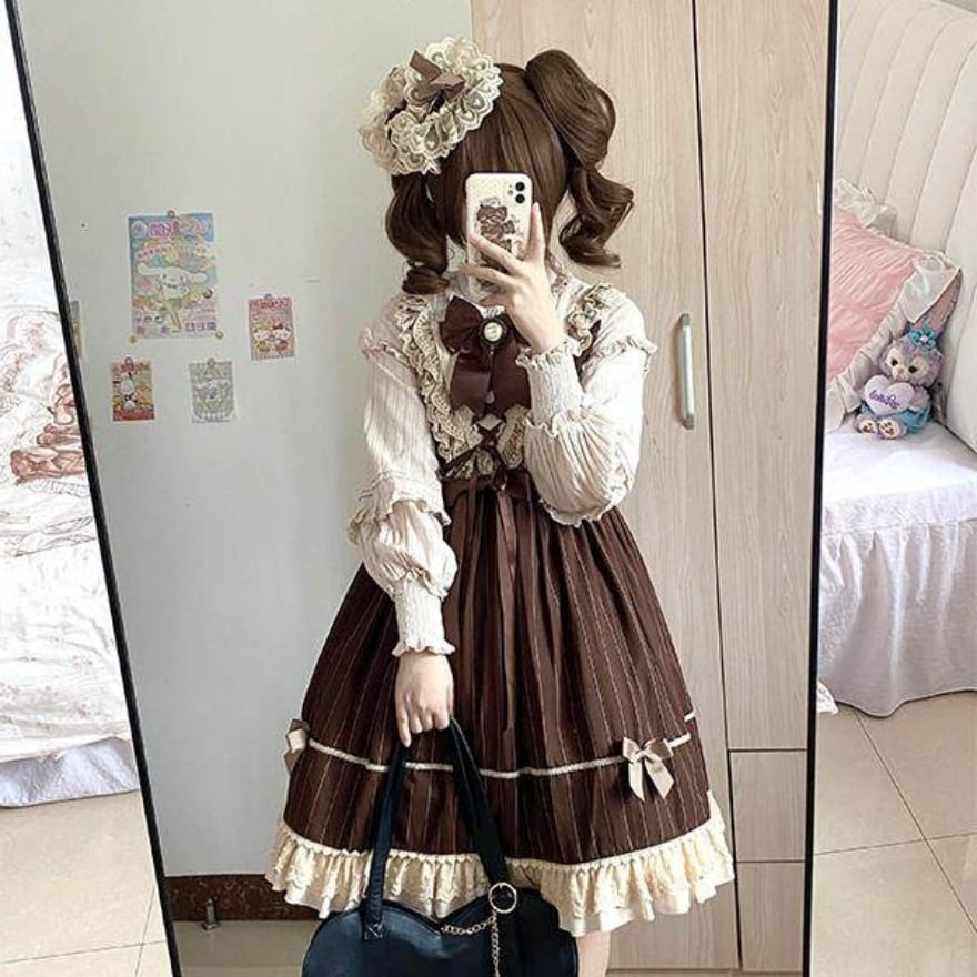 ・ブラウンを基調に生成りフリルとリボンを合わせたクラシカル甘ロリ配色