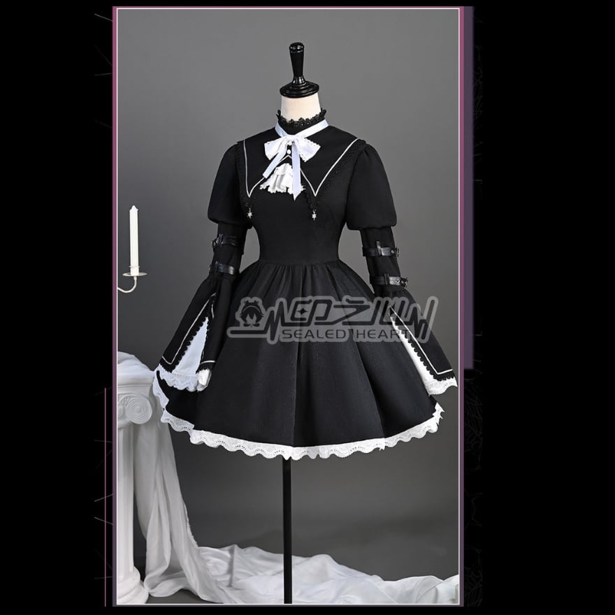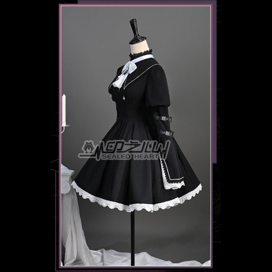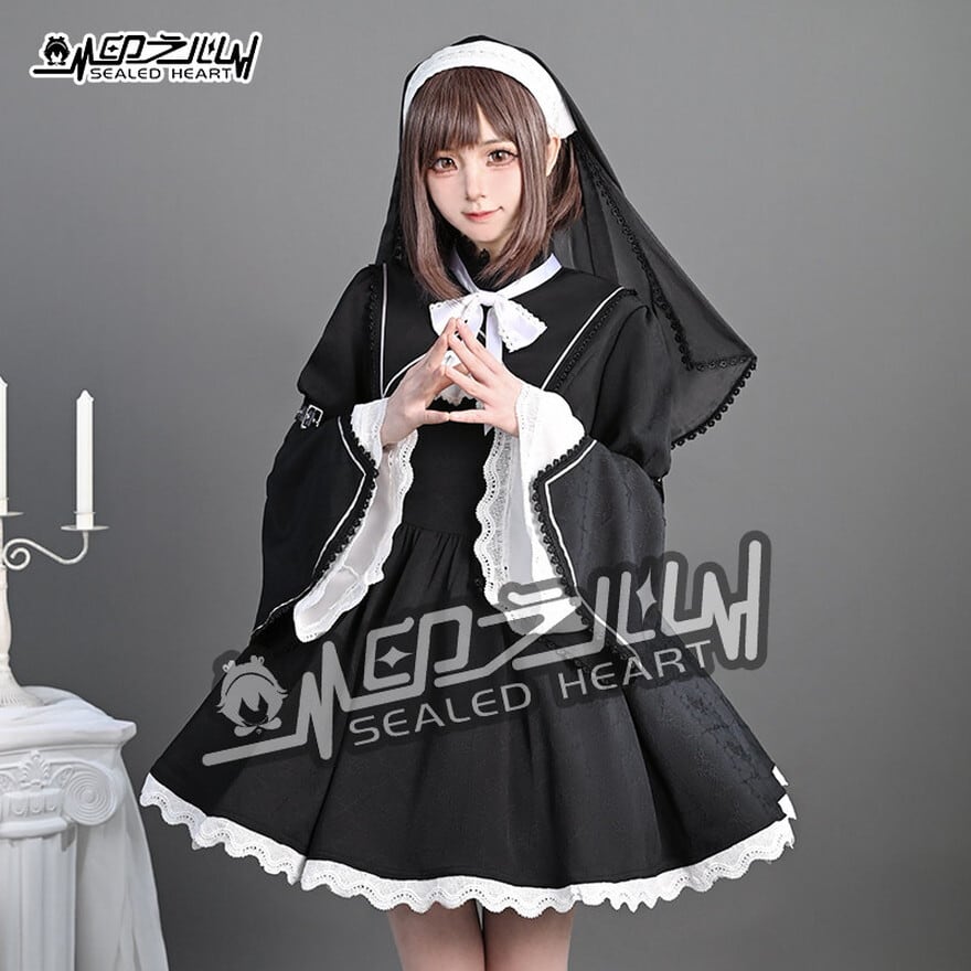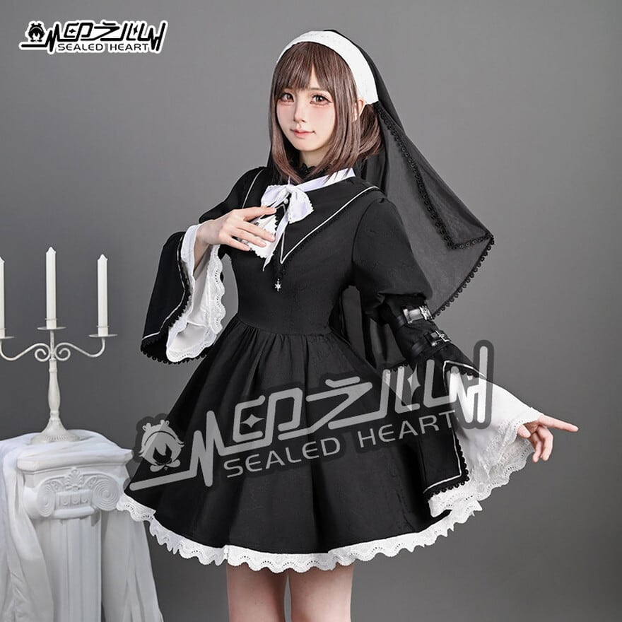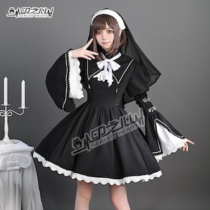 ゴシックロリータ 修道女風 セットアップ(ワンピース・付け襟・リボン・ヴェール)