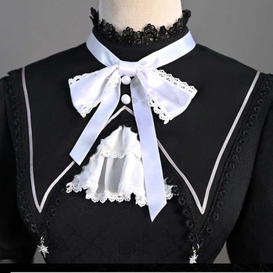 ・修道女を思わせるゴシックテイストの襟デザイン