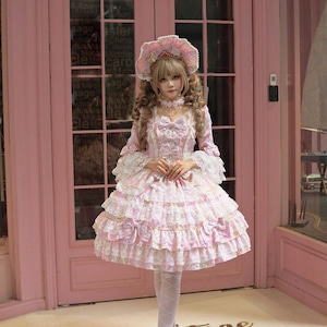 初心者のお茶会や推し活に。スウィートロリータ ボンネット付ワンピース 豪華フリル 優雅で軽やか パステルカラー