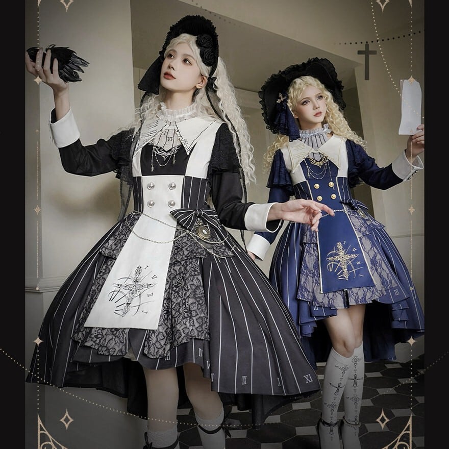 聖堂の聖歌隊をイメージした十字架刺繍とストライプ柄を取り入れた、初心者や大人の方でも安心して着られる「ゴシックロリィタ」ワンピースです。