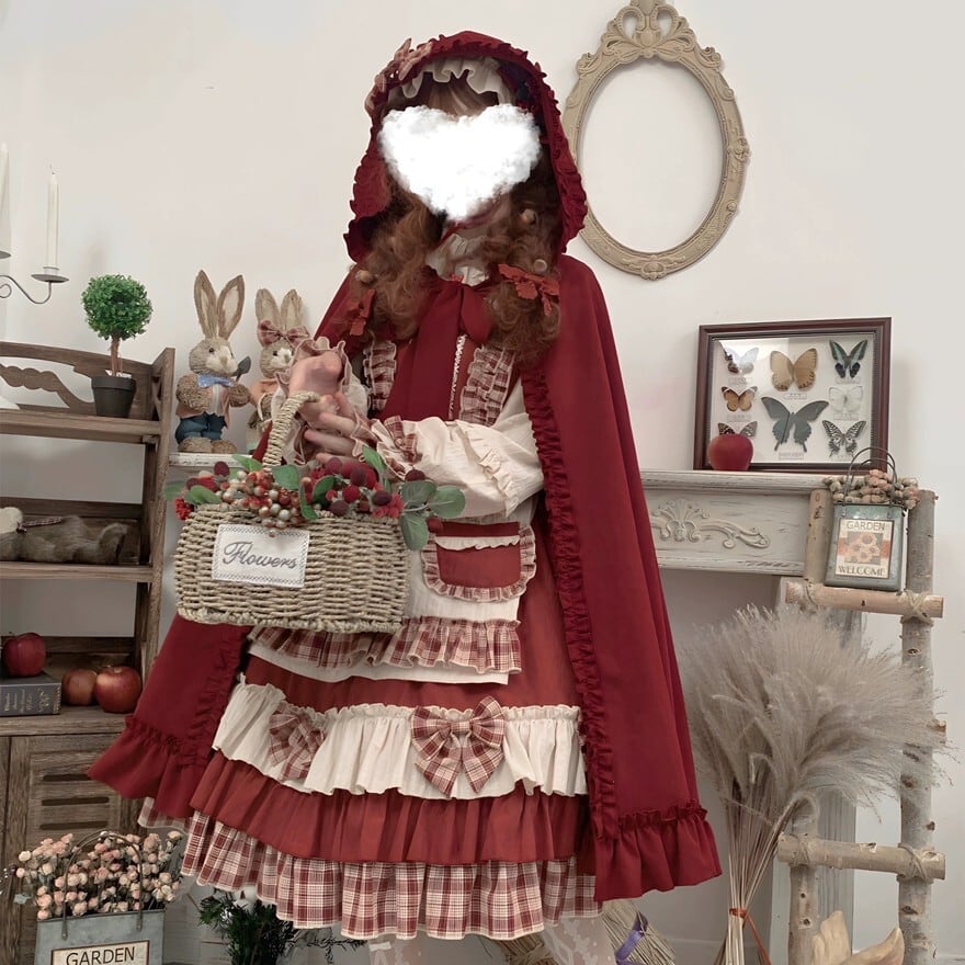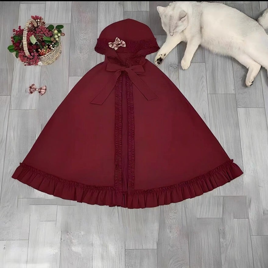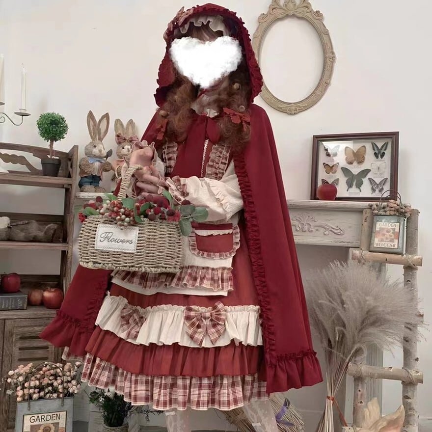 甘ロリ寄りだが、赤基調とケープの存在によりクラロリ要素も強く、ゴスロリほど暗くはない中間的立ち位置