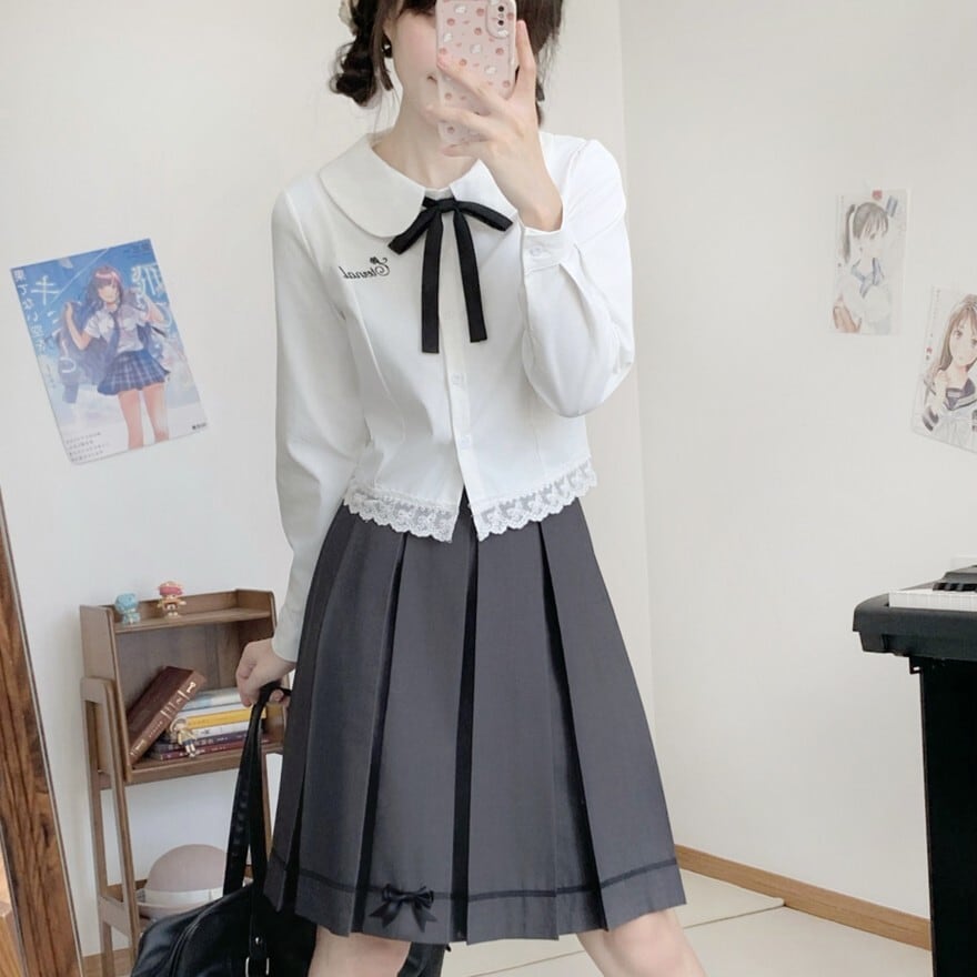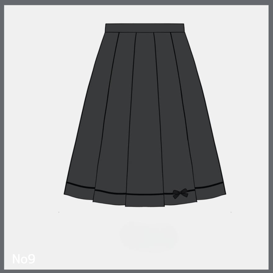甘ロリより装飾を抑え、クラロリ寄りの構成。地雷系ほど主張は強くなく、王子系よりも女性的な制服風デザインです。