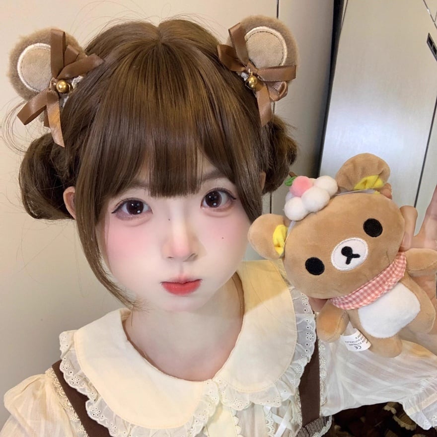 やさしいブラウン系カラーのくま耳モチーフが印象的なロリィタ用ヘアドレス。小ぶりな耳とリボン装飾が、コーデ全体を甘くまとめてくれます。難しいセットは不要で、普段の髪型に合わせるだけ。初めてヘアアクセに挑戦する方にも取り入れやすく、写真映えも叶います。
