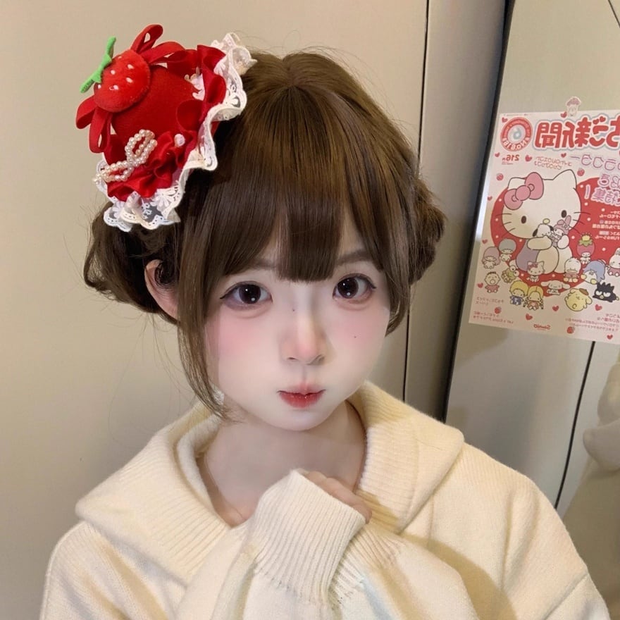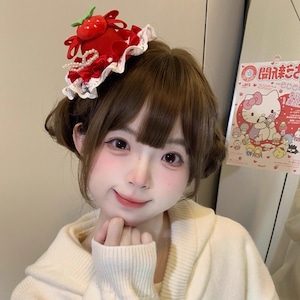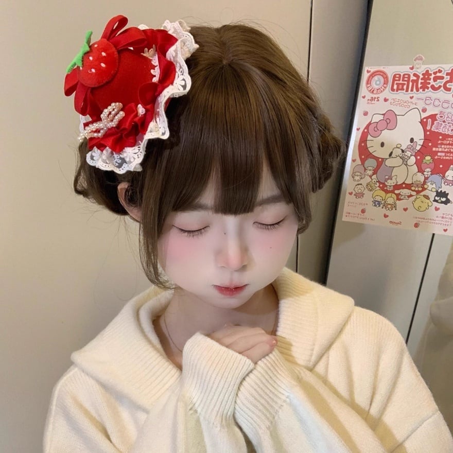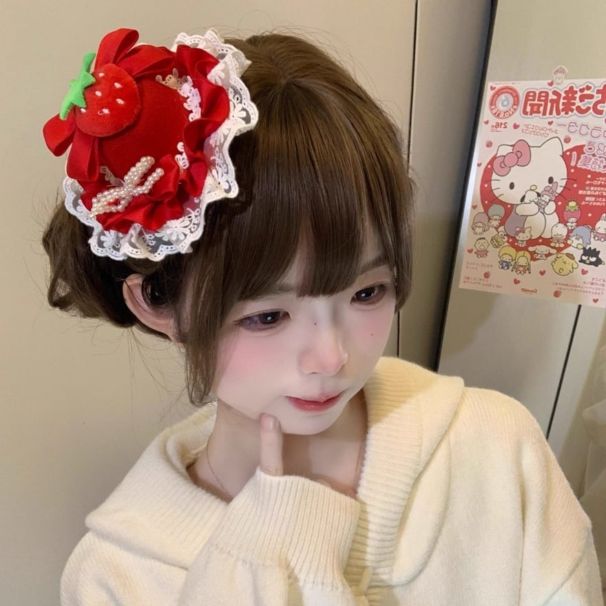 ・赤いいちごモチーフ付きの小さな帽子風デザイン