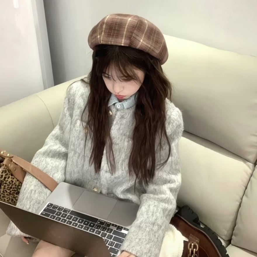 主張しすぎないチェック柄なので、普段のお洋服にも自然に合わせやすく、初めての帽子アイテムとしても安心して選べます。