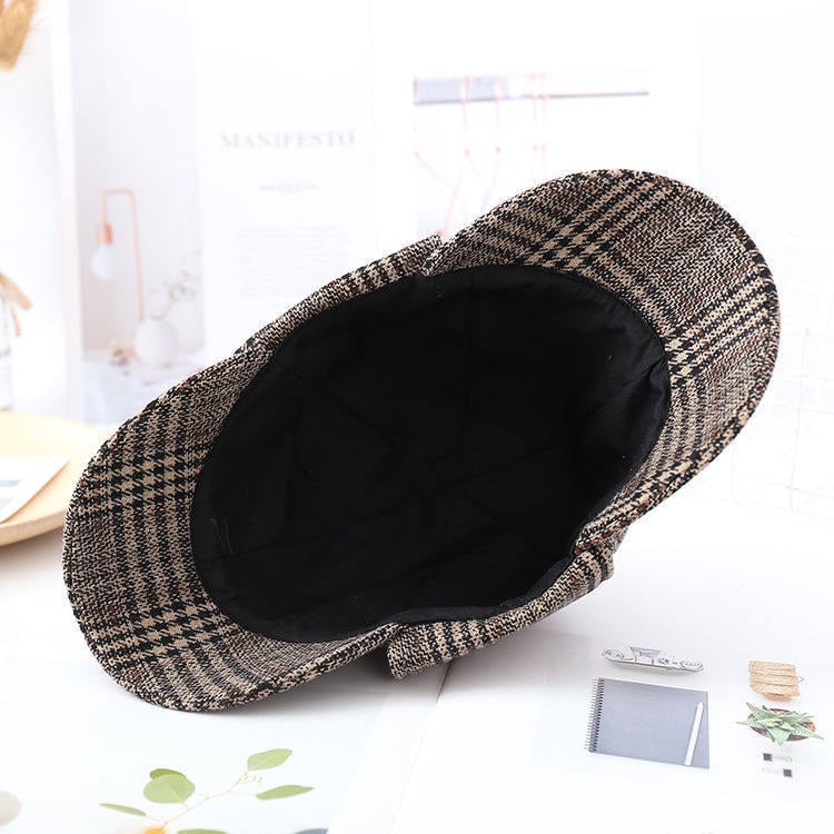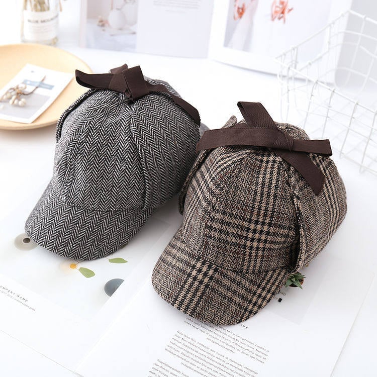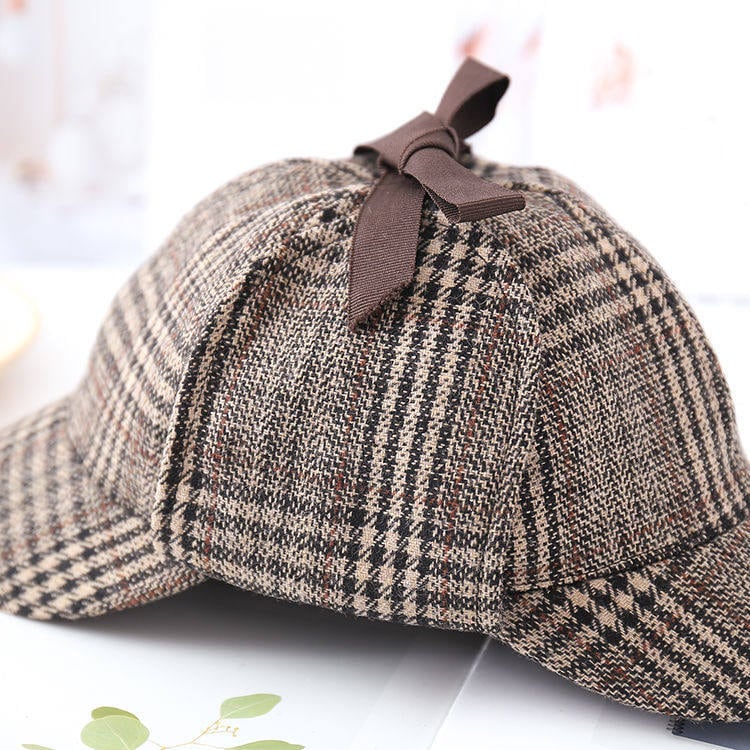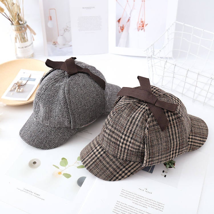 → 落ち着いたチェック柄と小ぶりなデザインで、初心者でも自然に合わせやすい探偵帽です。
