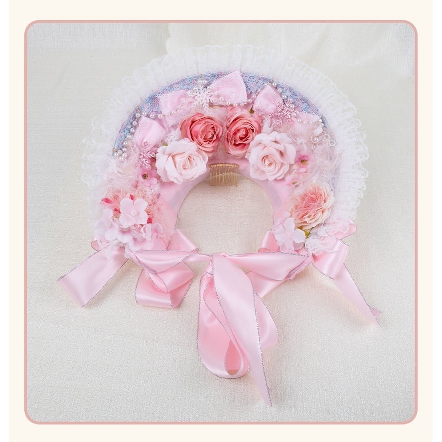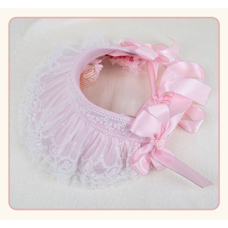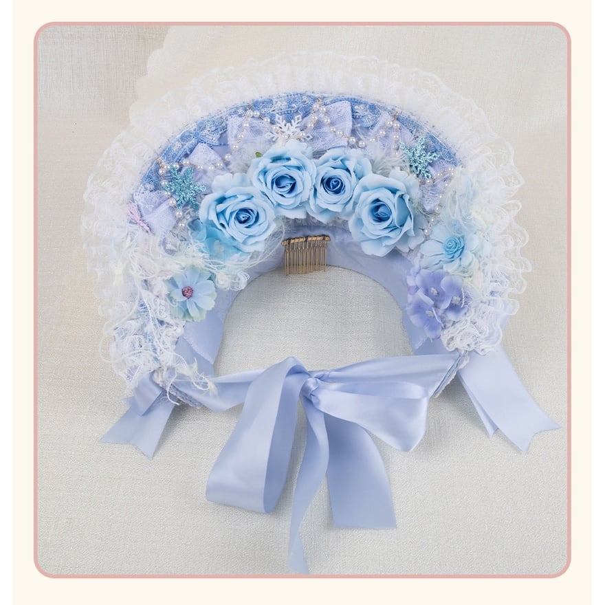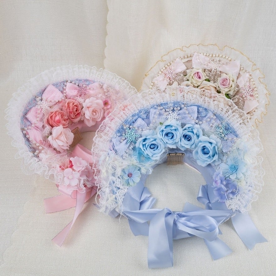 レースに縁取られたボンネットは、被った瞬間に物語の中へ誘う存在。軽やかな印象で顔まわりを明るく見せ、甘ロリからクラシカルまで幅広く調和します。結ぶだけのシンプルな着用感で、イベント・撮影・お出かけに自然と取り入れられます。