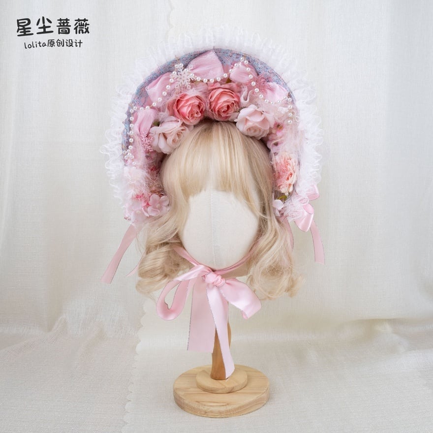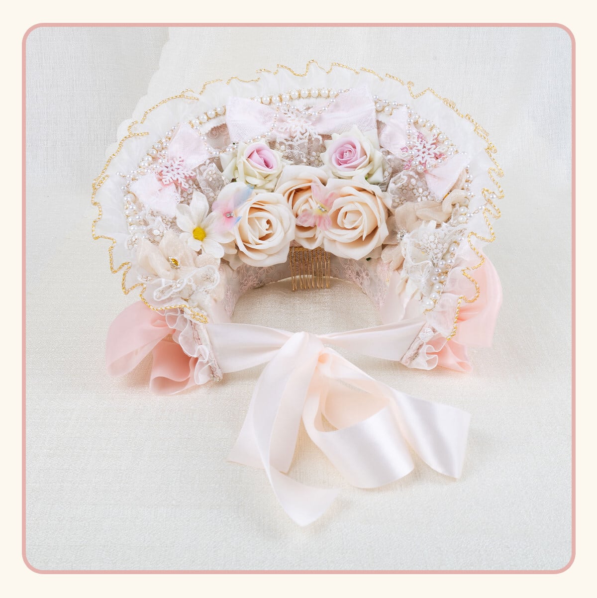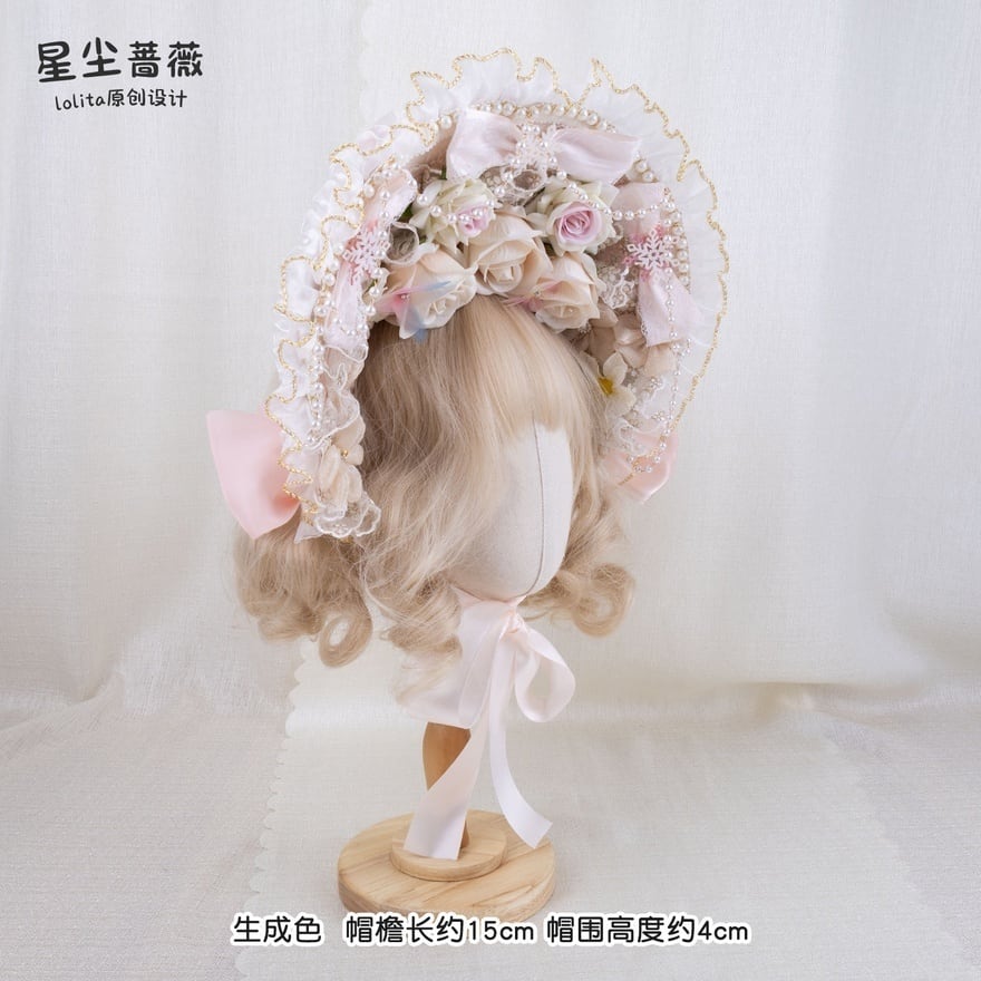 ・フラワーモチーフとレースを重ねた、甘く上品なボンネットデザイン