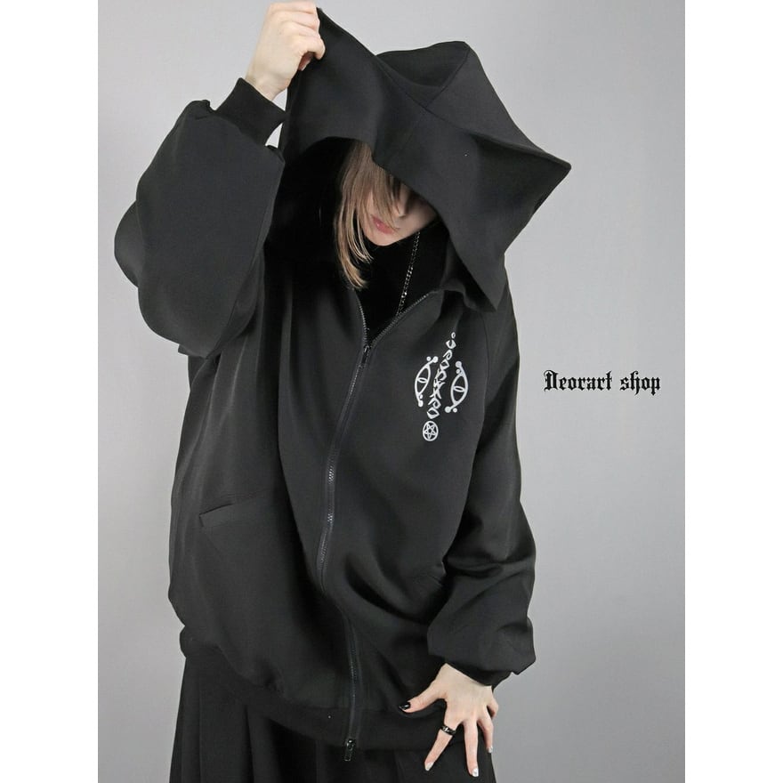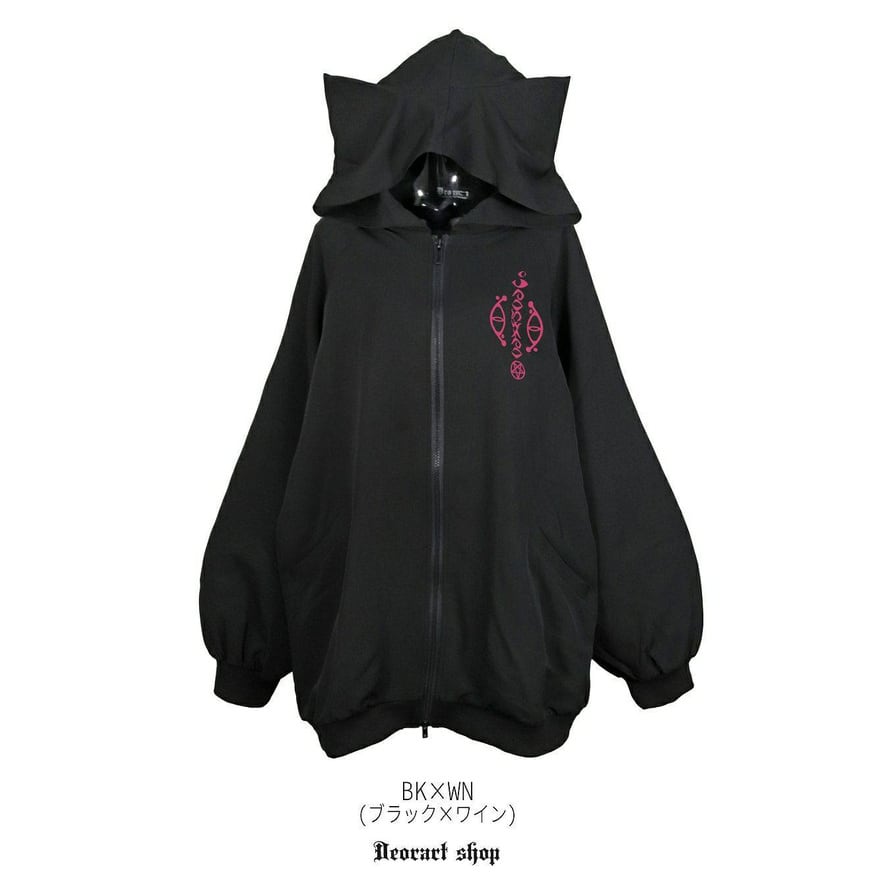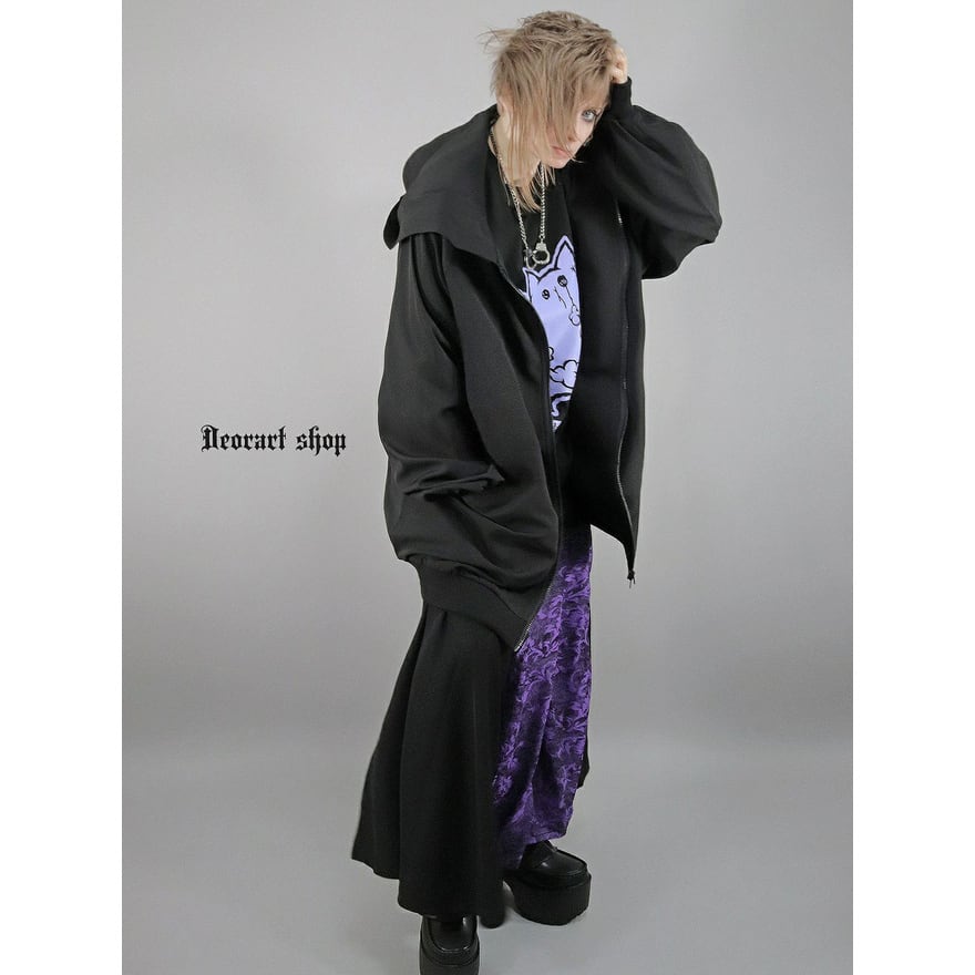 サブカル系ストリートスタイルに取り入れやすいフード付きスウェットです。