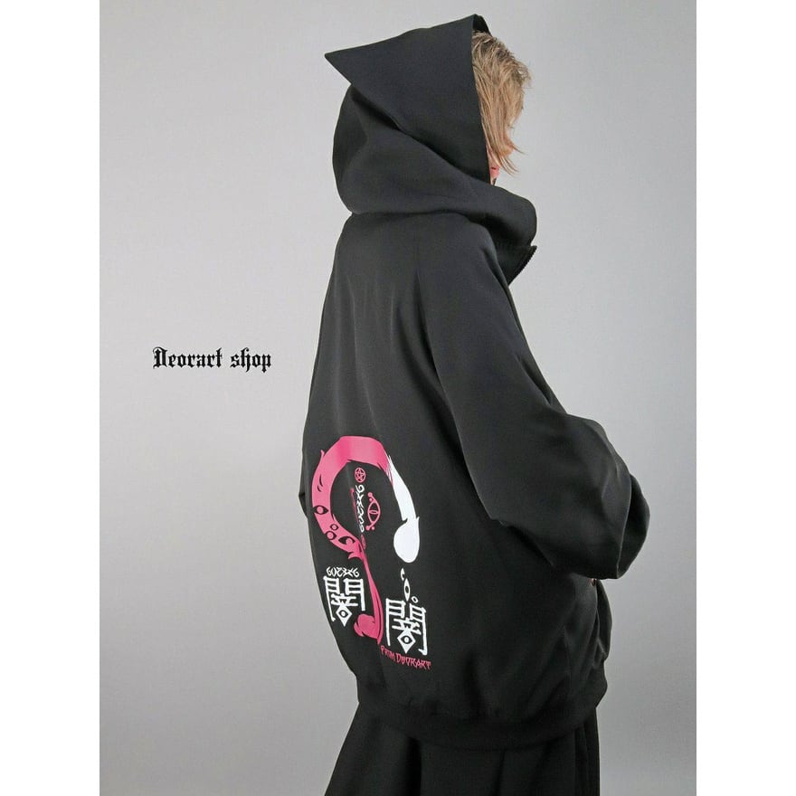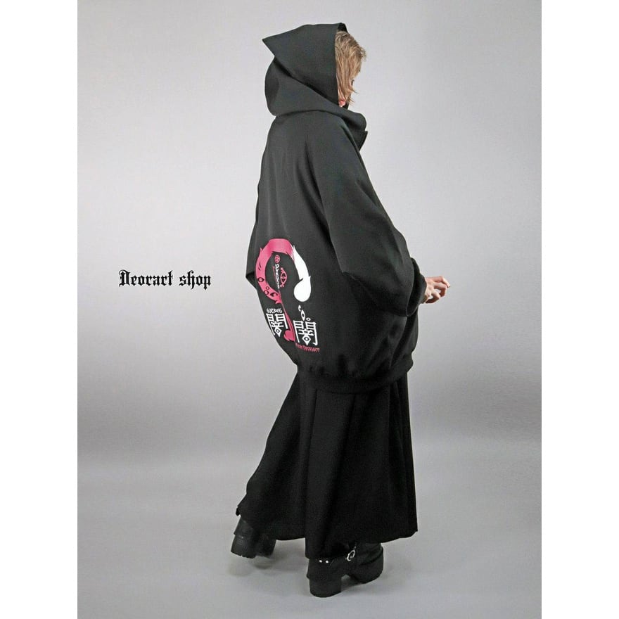 サブカル系ストリートに取り入れやすい、オーバーサイズ設計のフード付きスウェット(ユニセックス対応)