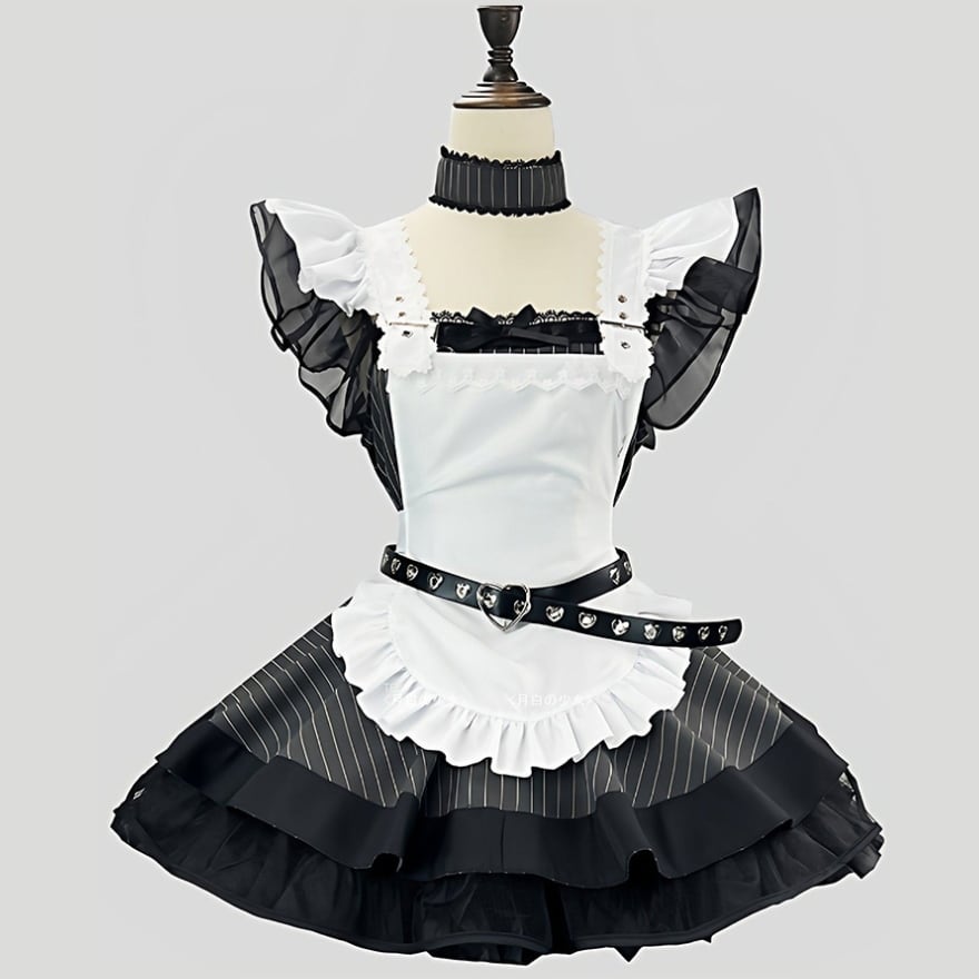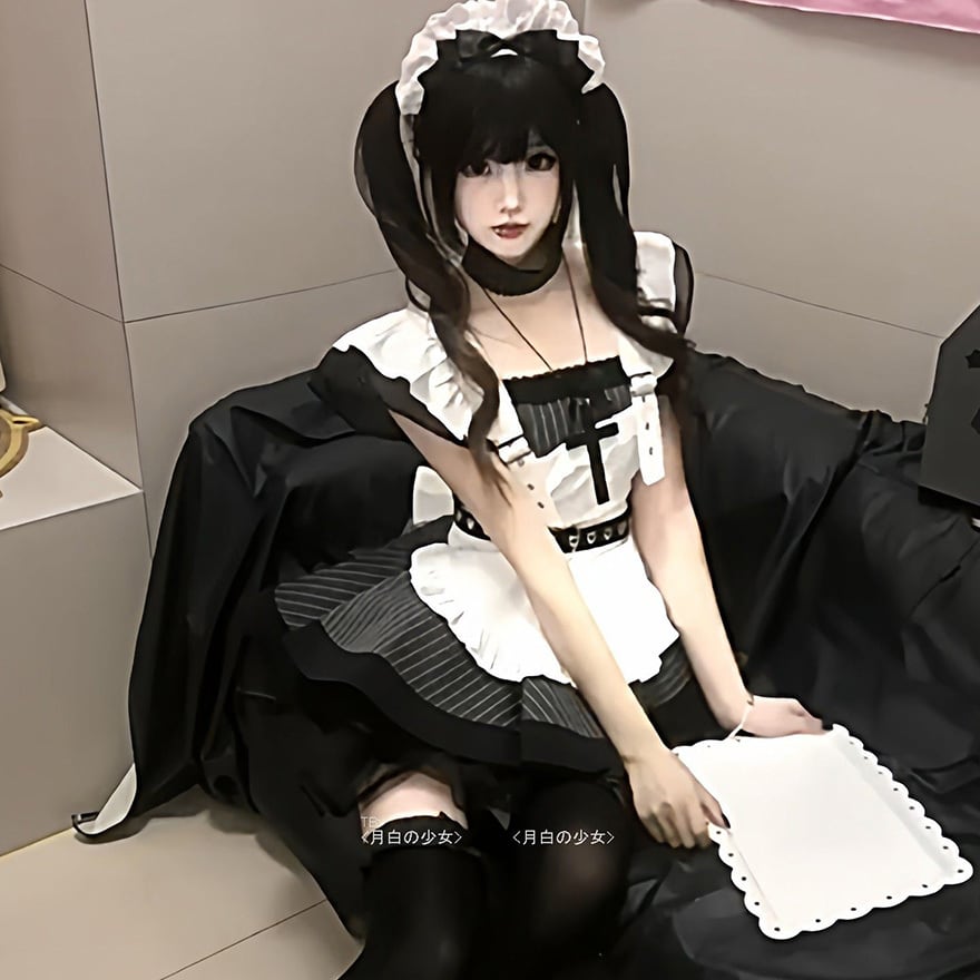 黒と白のコントラストと上品な襟のデザインが特徴で、撮影会やコンカフェのイベント衣装に最適です 。クラシカルなメイドスタイルにゴシックの耽美さを加え、一着で完成された世界観を演出します 。