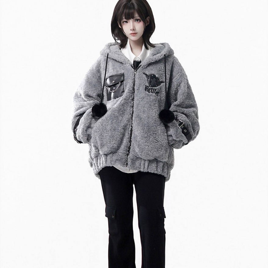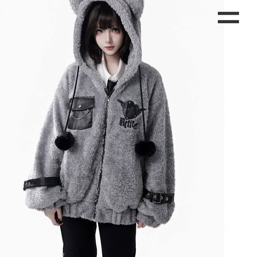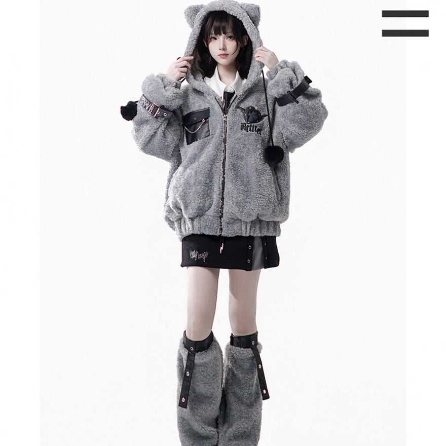 地雷系・サブカルファッション特有の配色と、愛らしい耳付きフードが融合した一着です。オーバーサイズなシルエットが華奢見えを叶え、ストリート感のある撮影会や日常のアクセントとして圧倒的な存在感を放ちます。