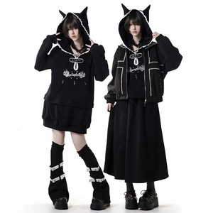 銀色の十字架型ファスナーチャームや、ポケットのハトメ装飾など、細部までサブカルチャーの美学を詰め込んだ一着です。