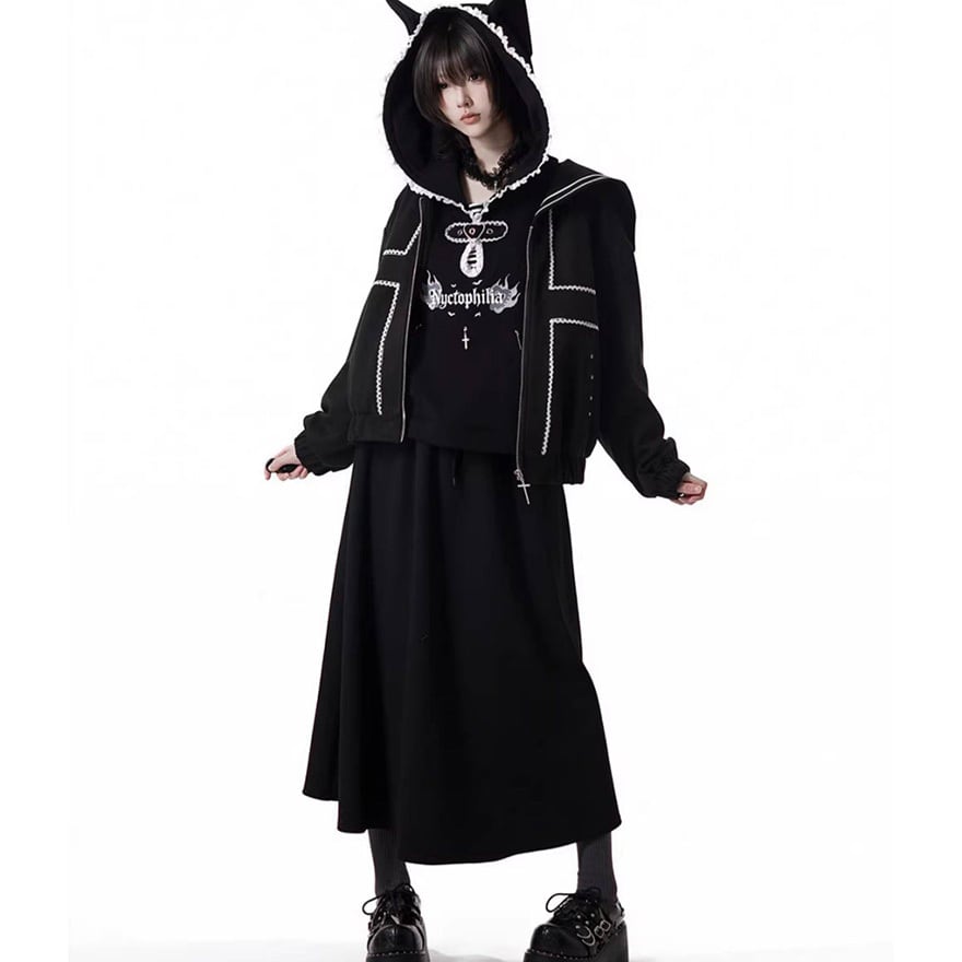 地雷系ファッションを好む方/猫耳モチーフや十字架の装飾を重視する方/一枚でスタイルを完成させたい初心者の方