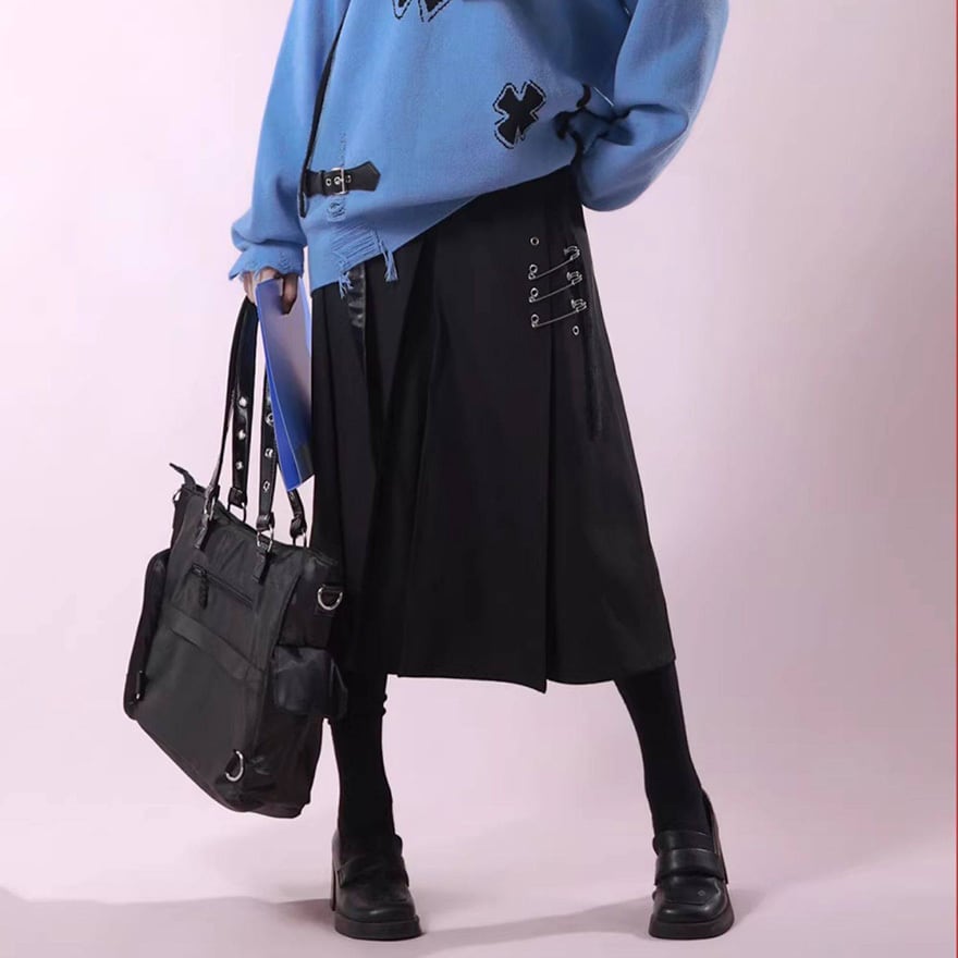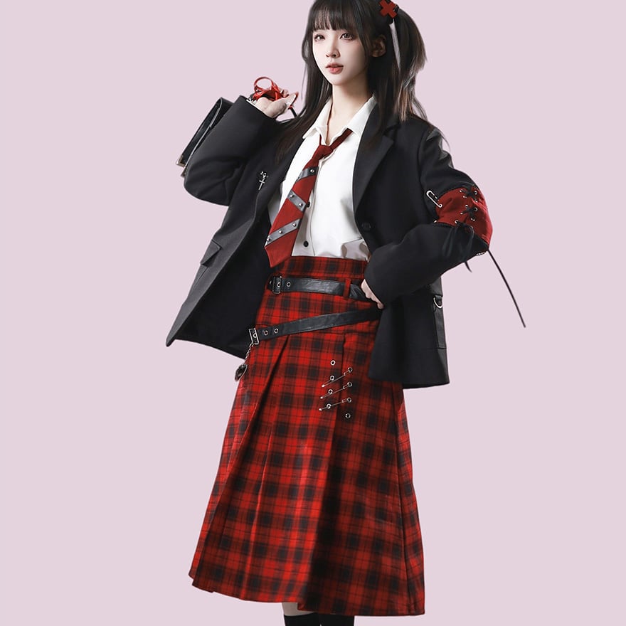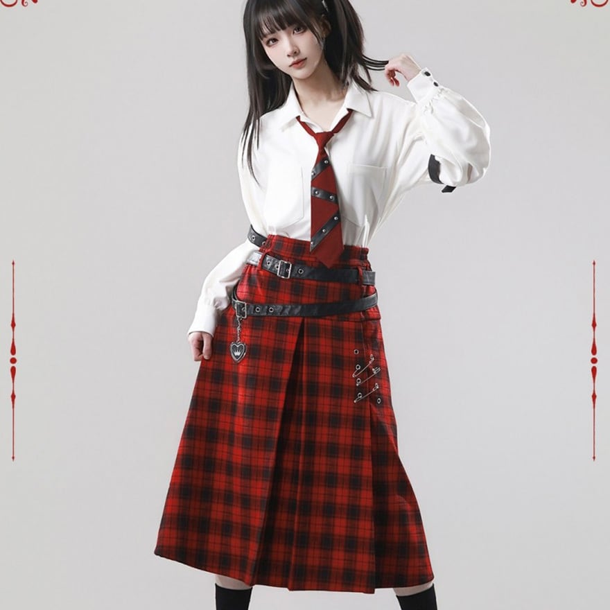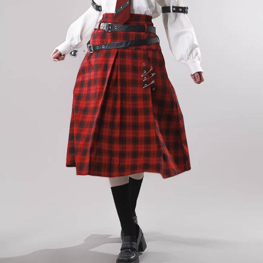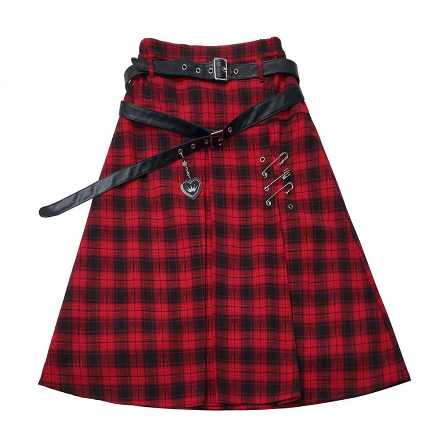 赤か、黒か──反逆心を纏う。ベルト×安全ピン ゴシックサブカルスカート(2カラー)|WithU