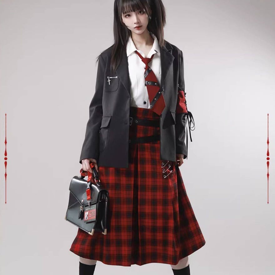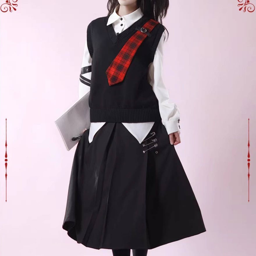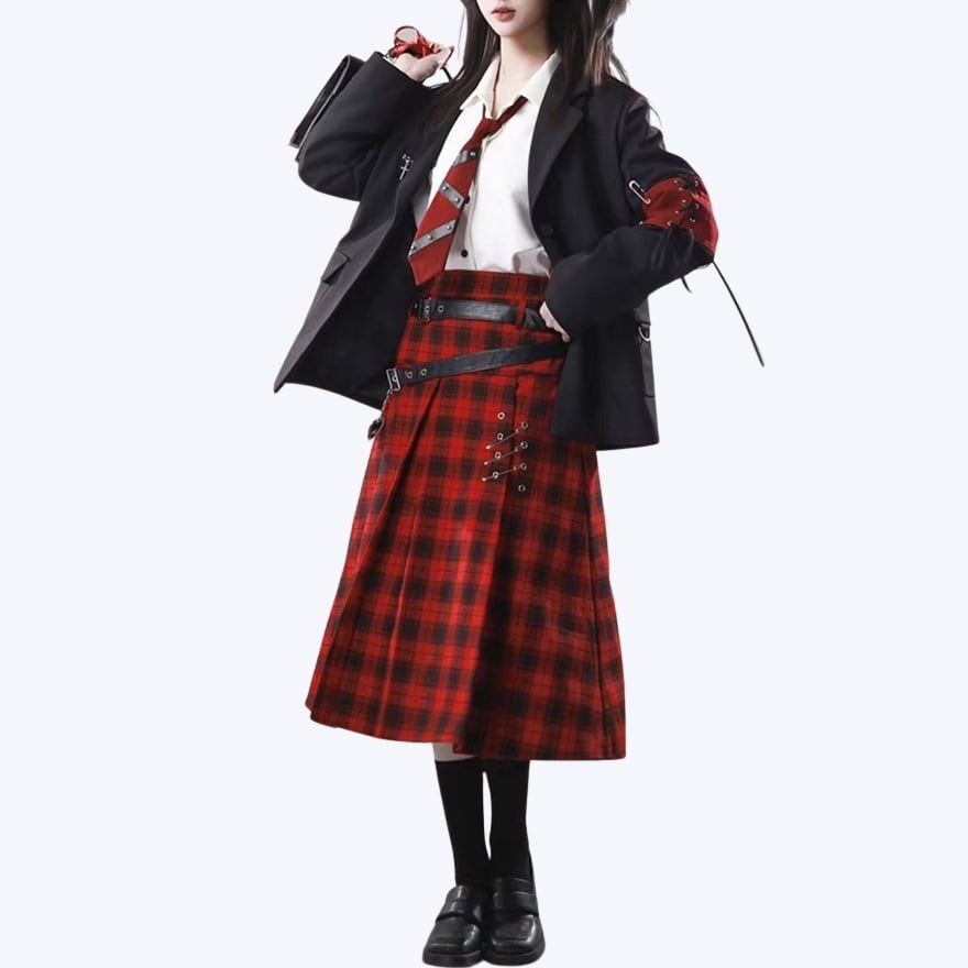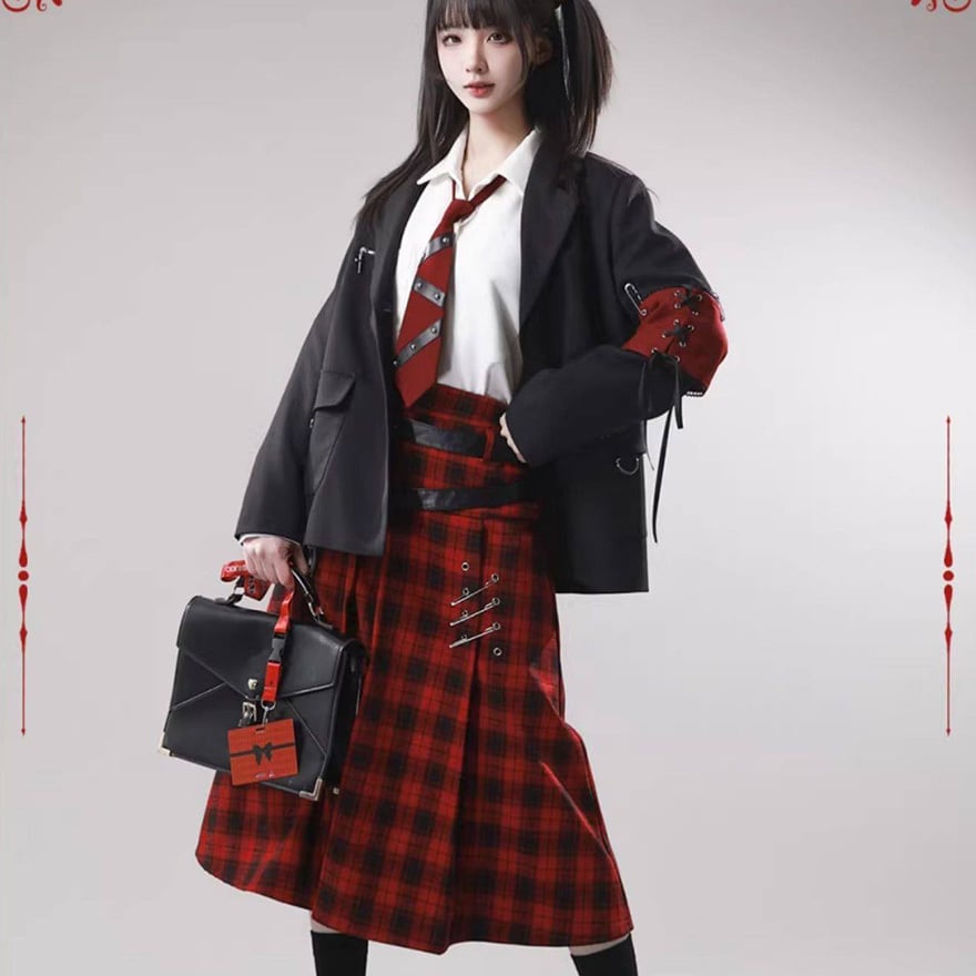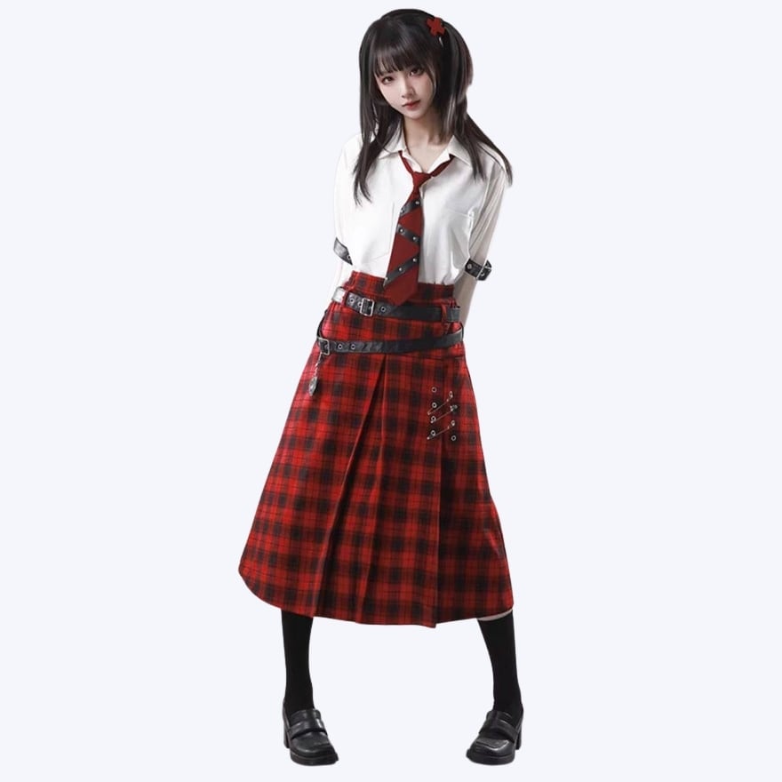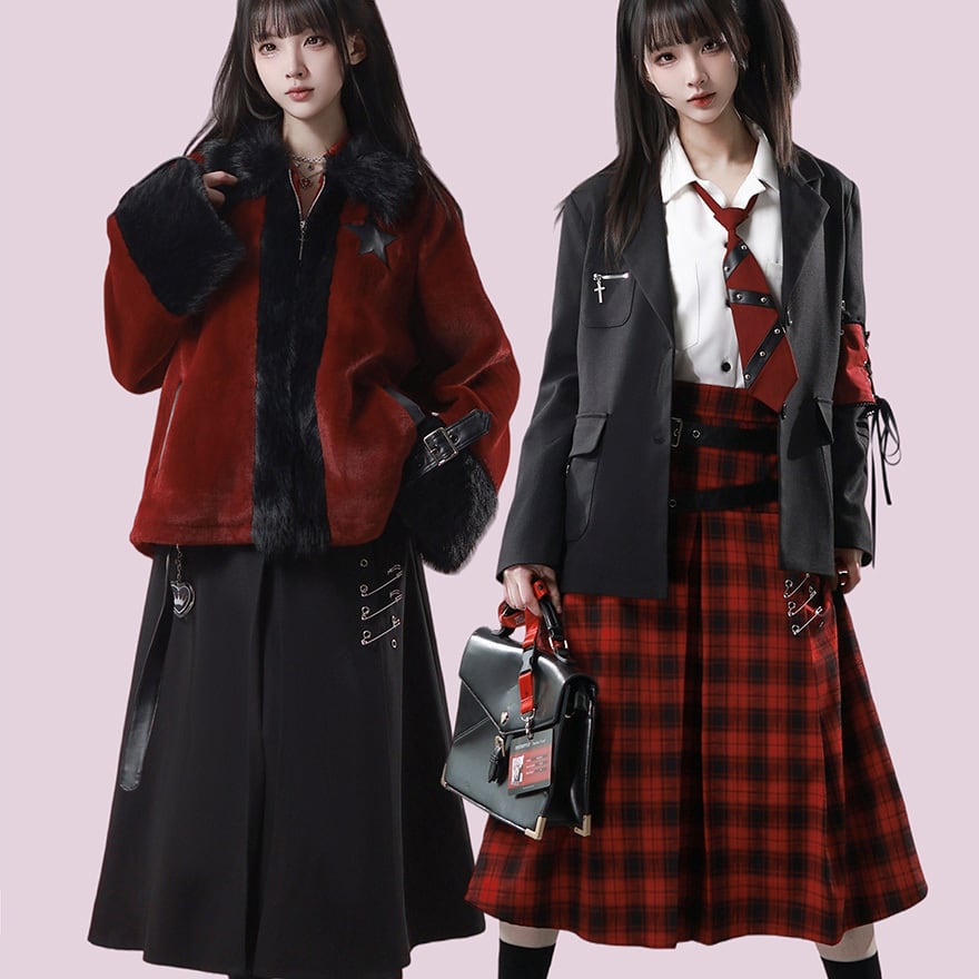 赤か、黒か──反逆心を纏う。ベルト×安全ピン ゴシックサブカルスカート(2カラー)|WithU
