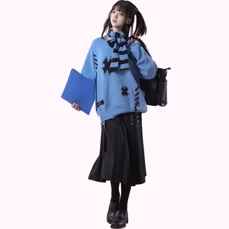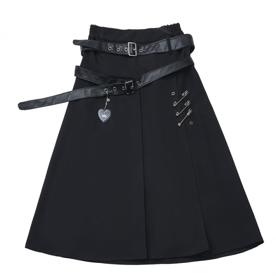 地雷系ファッションを好む方/ベルトやピンなどの金属装飾を重視する方/膝下丈でシルエットの綺麗なスカートを探している方