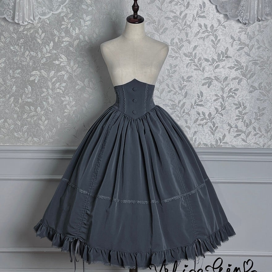 ・ゴシックロリータのお茶会・イベントに。タイプBのコルセットスカートはトップス次第で甘さの調整がしやすく、大人ゴシックコーデにも合わせやすい構成です。