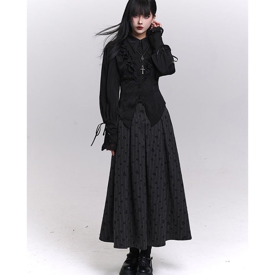 ゴシック寄りの世界観を反映したロング丈のフレアスカートです。