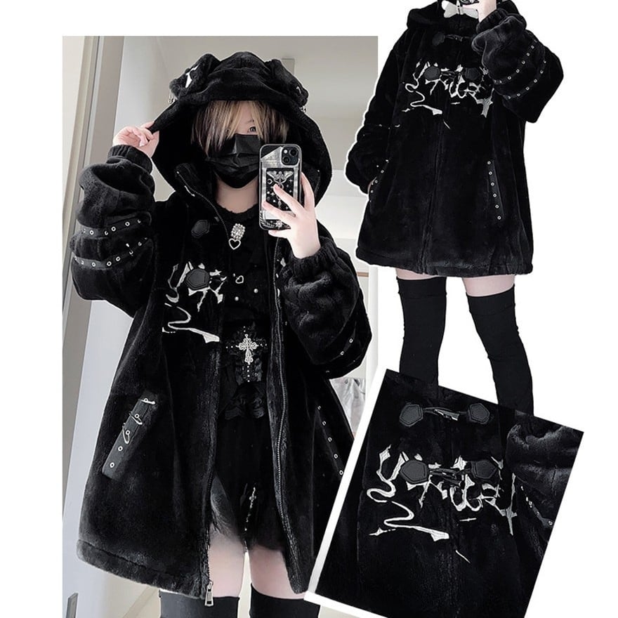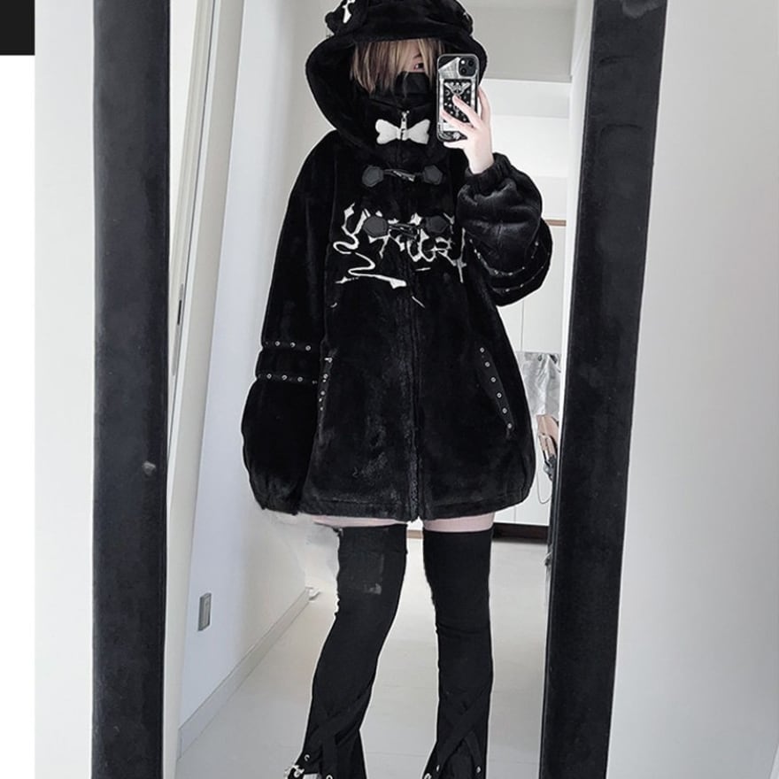 地雷系の世界観を好む方、厚手でゆったりとしたシルエットを重視する方、防寒性と個性を両立させたアウターを探している方。