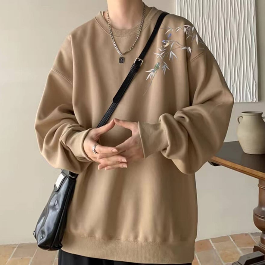 和洋折衷やモダンな中華風デザインを好む方、オーバーサイズで体型カバーをしたい方、ユニセックスで着用可能な個性的なスウェットを探している方。