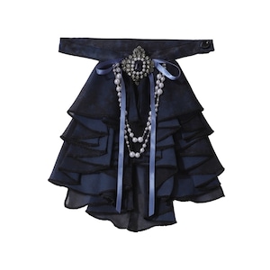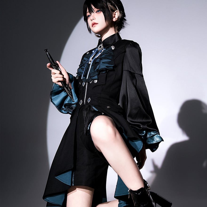 麗人 男装 セットアップ 王子系 黒×ブルー ロングジャケット フリルシャツ ハーフパンツ