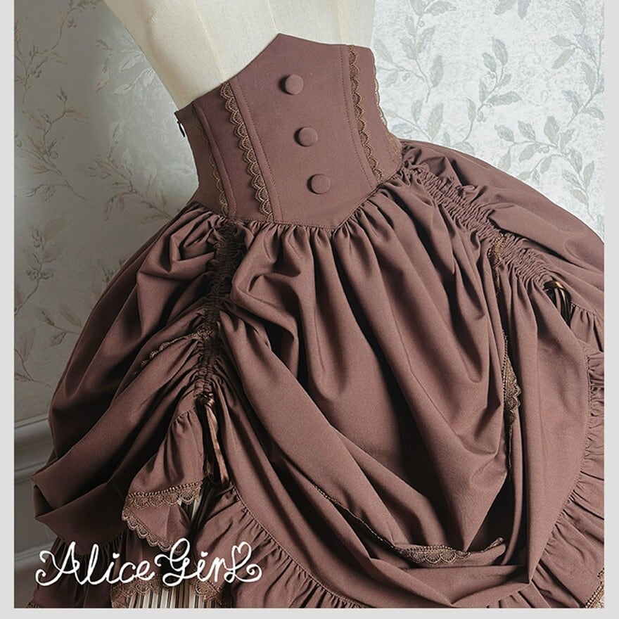 ゴシックロリータのお茶会・イベントに。ブラウン×ベージュは暖かみある古典的な優雅さを、ダークグレー×グレーは凛とした静謐な気品を演出します。
