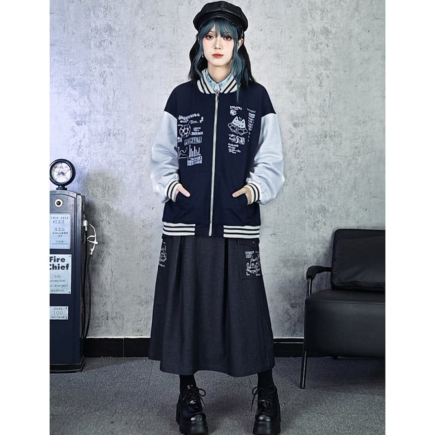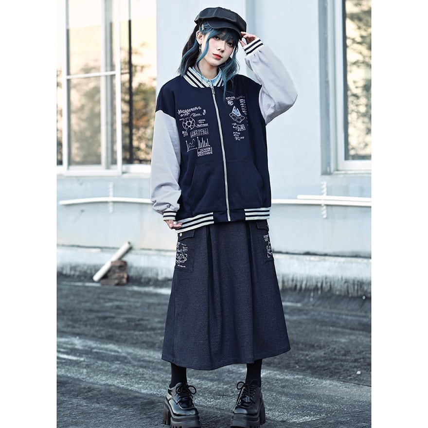 ゴシック・オルタナ系のイベントや街歩きに。落ち着いたチャコールが場を問わず馴染みながら、プリントがさりげない個性を添えます。