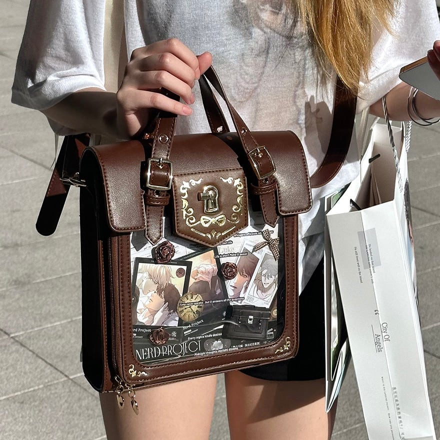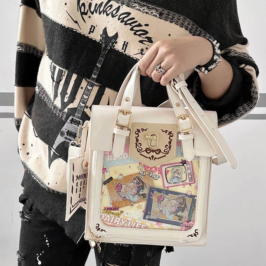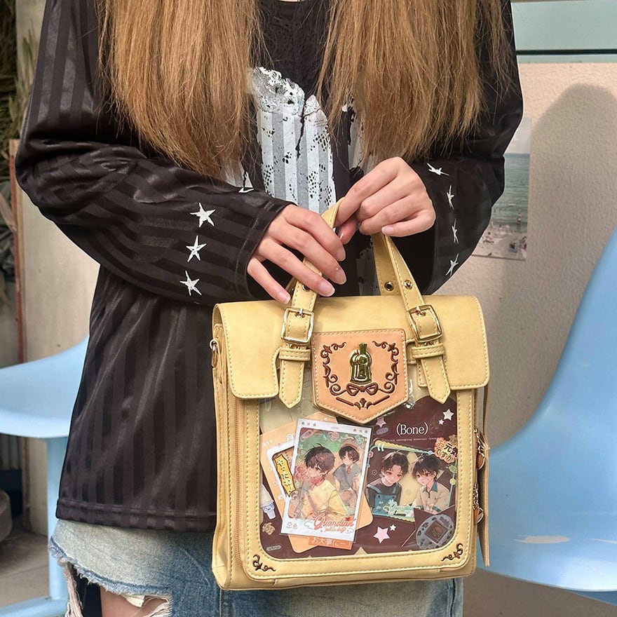 前面の透明窓にお気に入りのグッズを飾り、自分だけの「推しバッグ」を作成できます。